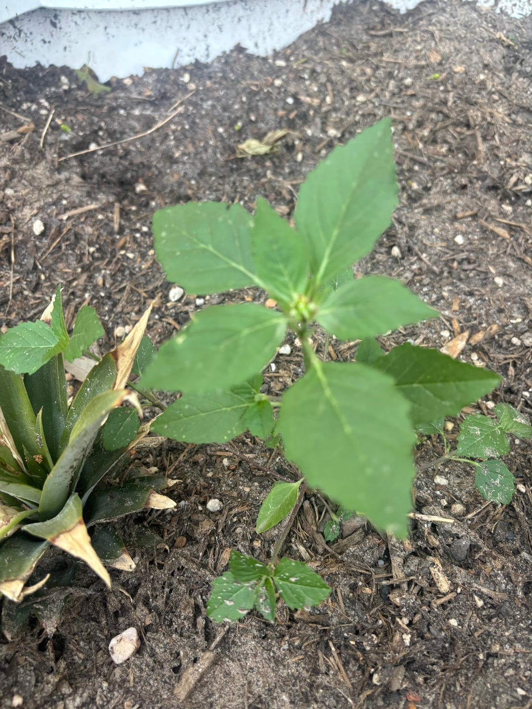最初のものは単なる雑草なのか、それとも堆肥から出たものなのかわかりませんか? (私の下手に植えたパイナップルの実験を批判しないでください)