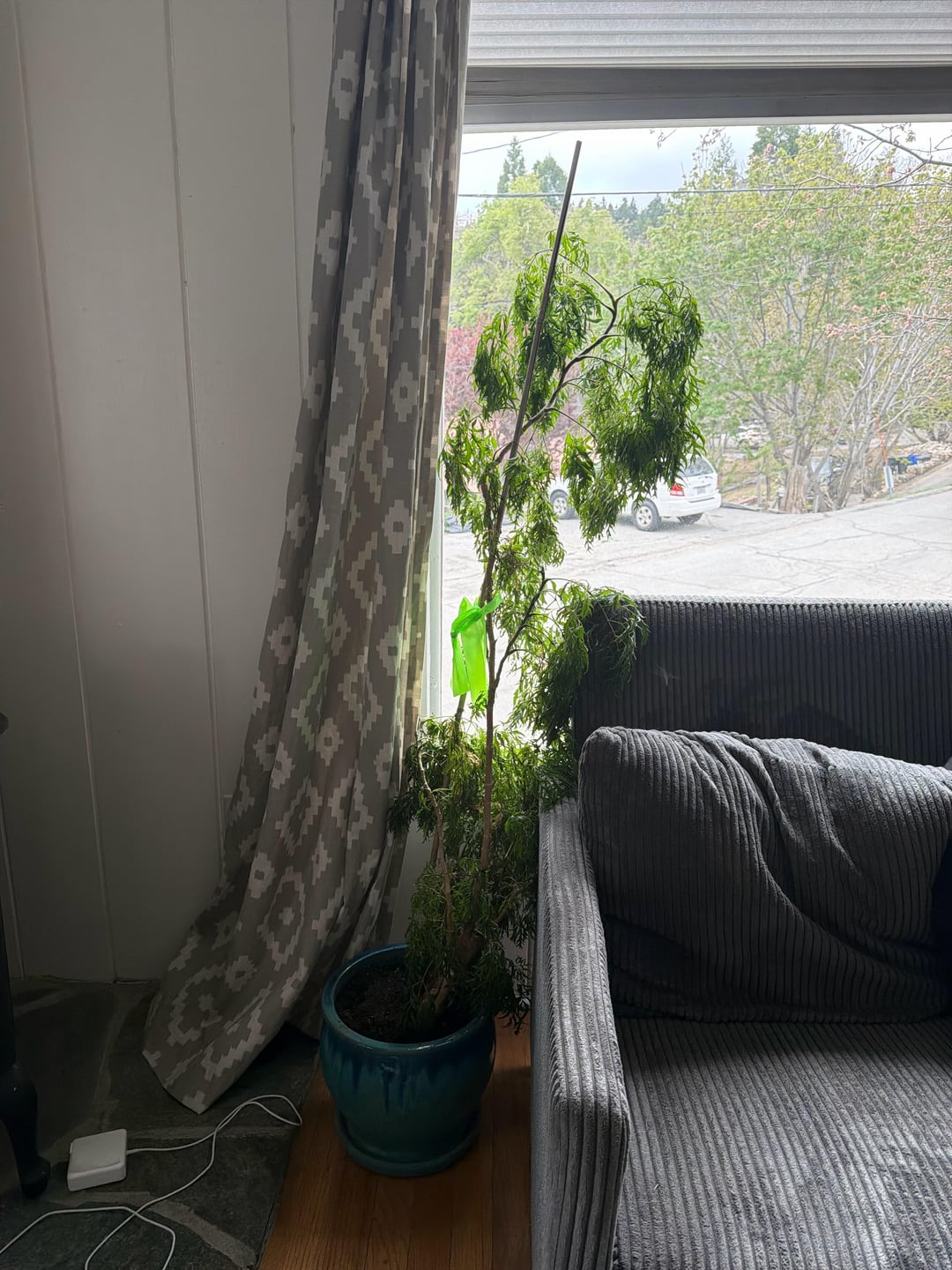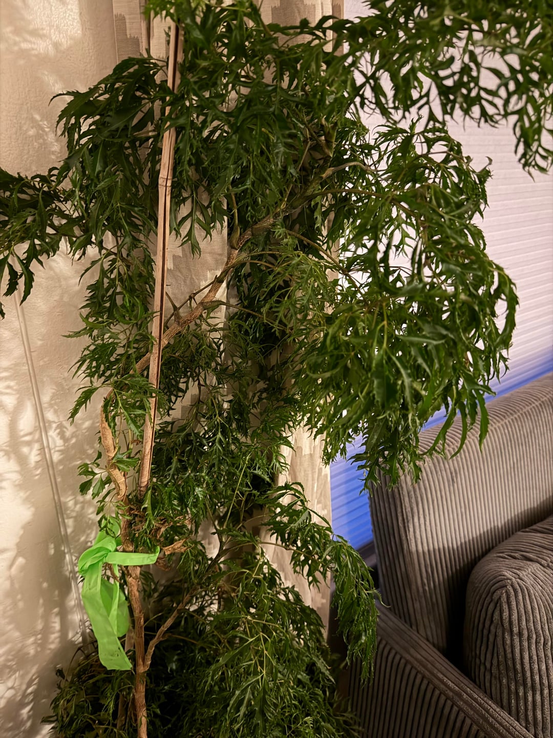 このグループに参加しました 👋🏼 このミンアラリア(?)を友人から頂きました。 かなり湿気が多かったので、 飽和した土壌。植え替えました。それにしても背が高くて細いですね サポート用の竹の棒を持っています。剪定が必要なのはわかっていますが、どれくらい剪定する必要があるのでしょうか? 壁にボールが当たったら、半分に切りますか?それとももっと穏やかなアプローチを取りますか? 🫠
