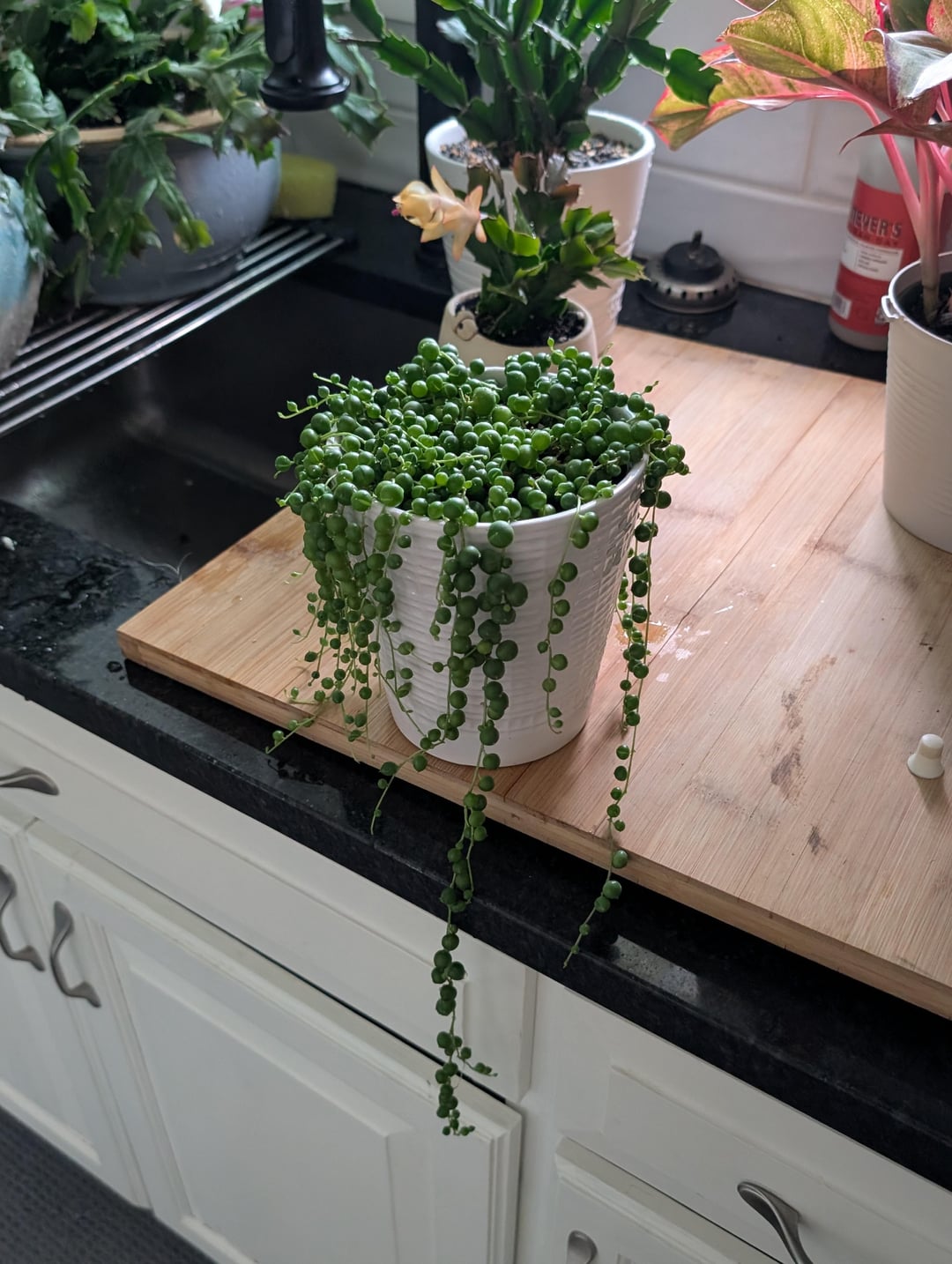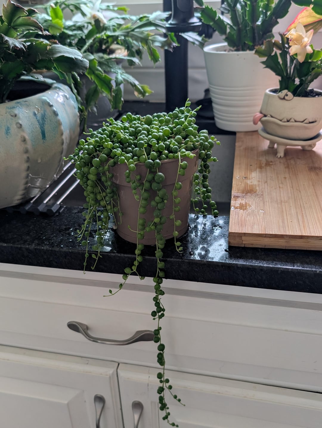 この植物「ストリング・オブ・ビーンズ」を初めて所有するのですが、2回開花したので幸せだと思いますが、いつ大きな鉢に植える必要がありますか?ビニールポットの底から根が出ています。