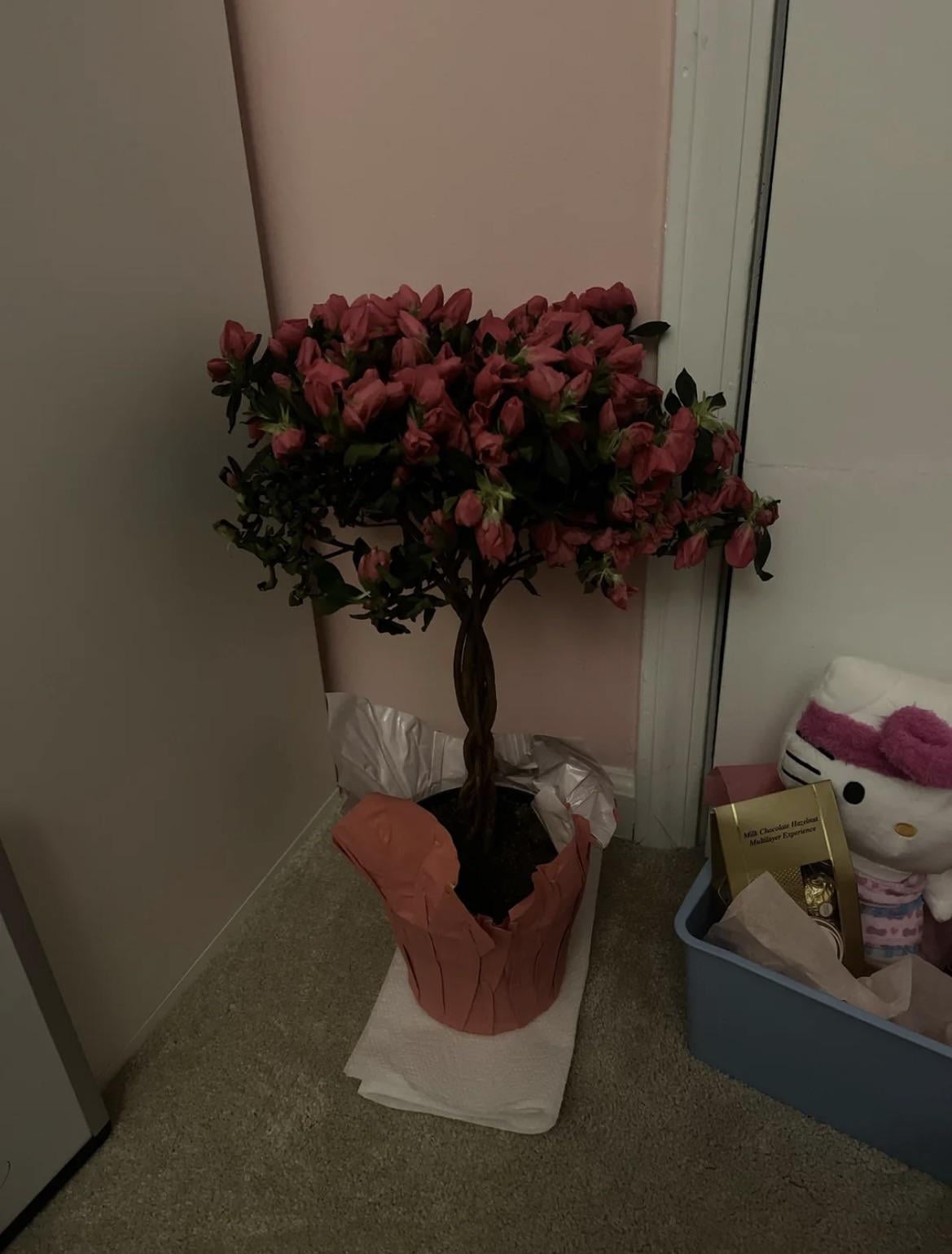 彼氏からこの植物をもらったのですが、ラベルがついていないので何なのかわかりません。グーグルで逆画像検索すると、ツツジという植物だそうです。適切なお手入れ方法についての推奨事項が知りたいです。すぐに実際の鉢を購入する予定です。