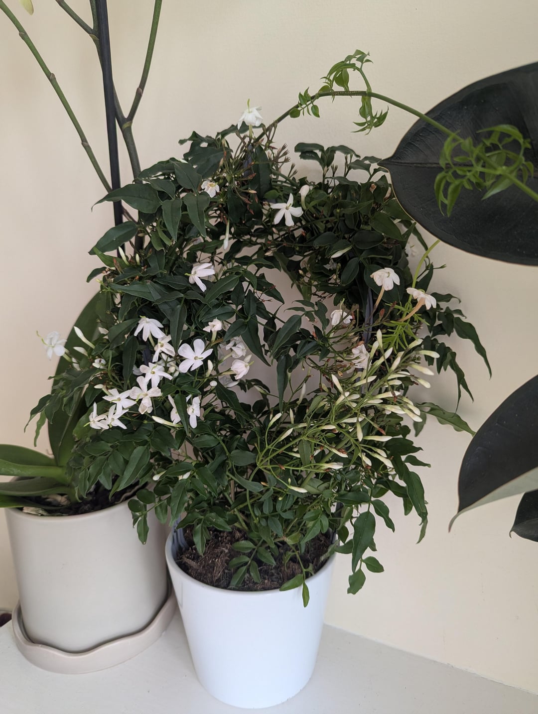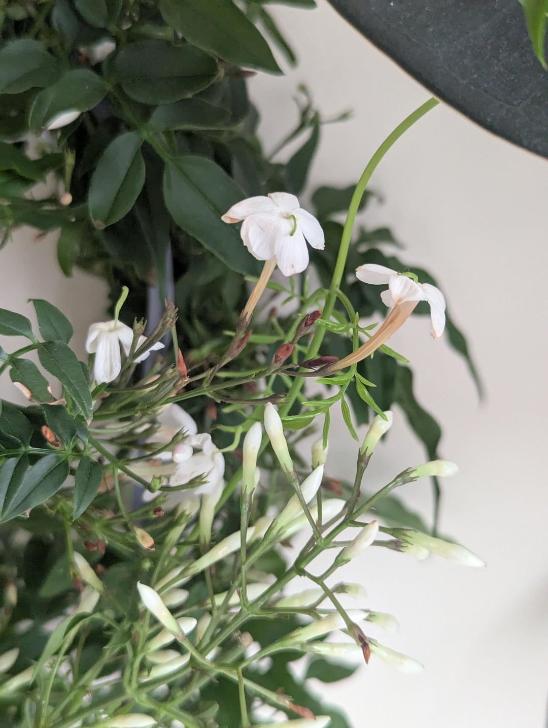 園芸店でジャスミンの苗を入手しました。観葉植物として販売されていました。匂いは素晴らしく、タグの指示に従って、間接日光の当たる場所に置かれていました。でも毎朝、茶色の花がどんどん落ちていくのに気づきます。これは正常ですか、それともこの植物に何か問題があるのでしょうか? 写真1. 茶色の花 写真2. 植物全体 写真3. 光に合わせて配置 アドバイスをよろしくお願いします