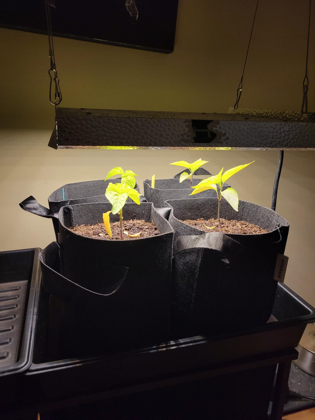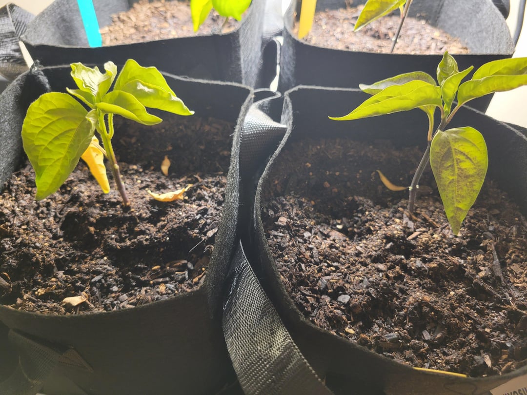 ハラペーニョと黄ピーマンは約1か月前に芽を出しました。 私はMars Hydro 100ワットの育成ライトの下で1日約16時間育てています。 2週間前に1ポンドの布製ポットに移しました。 ミラクルグロウの肥料を2週間に1回与えています。 土の表面が信じられないほど乾いていることに気付いた場合は、ほぼ隔日で底から水やりをし、時々上水も与えます。 葉の上に移動させた後、葉が黒くなり、黄色の葉がいくつか落ちていることに気づきました。 何を提案しますか? これを行うのは初めてなので、真新しいです。