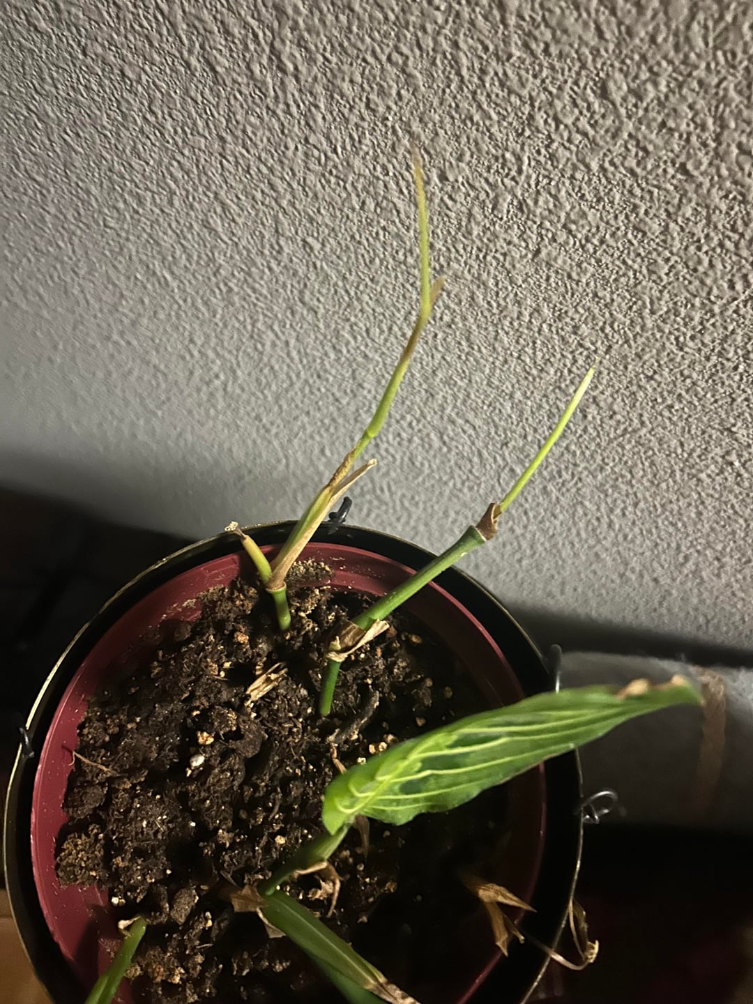 こんにちは!誤って祈りの植物に水をやりすぎて、これらの茎は葉を失いました。成長を促すために何かできることはあるでしょうか?