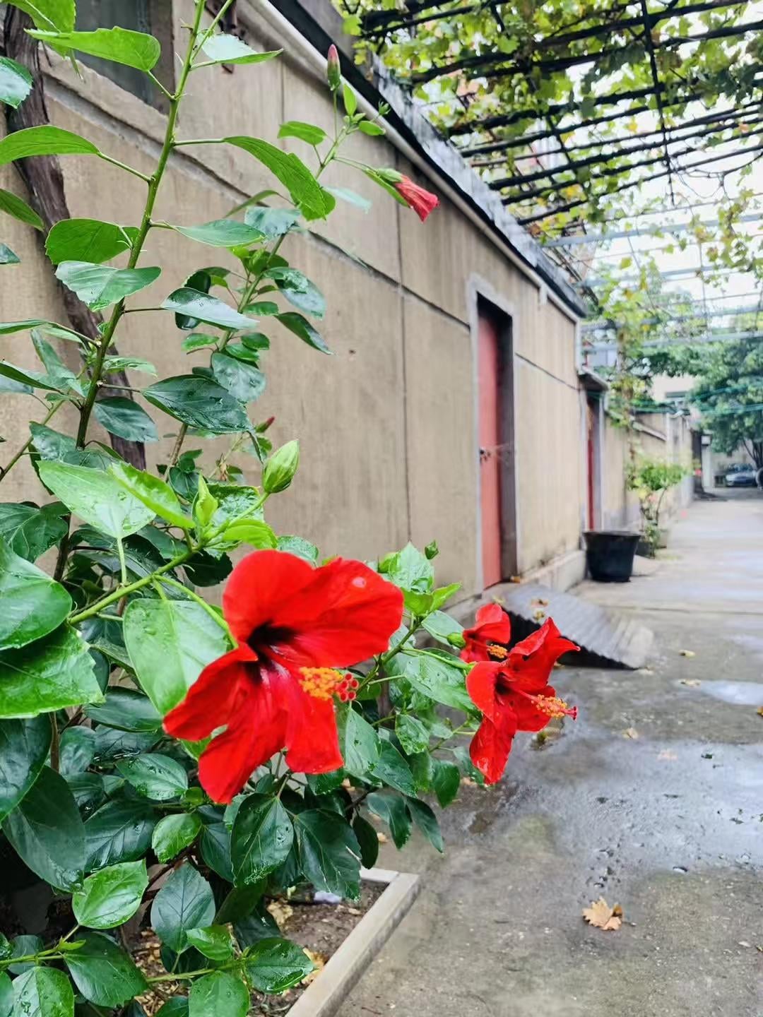 手入れもせず、ただ壁際で育てています。花びらについた雨粒が赤く染まったように見えます。これを手に取ったとき、風は湿った花の香りのような香りがしました。古い路地には素敵な驚きがたくさんあります。