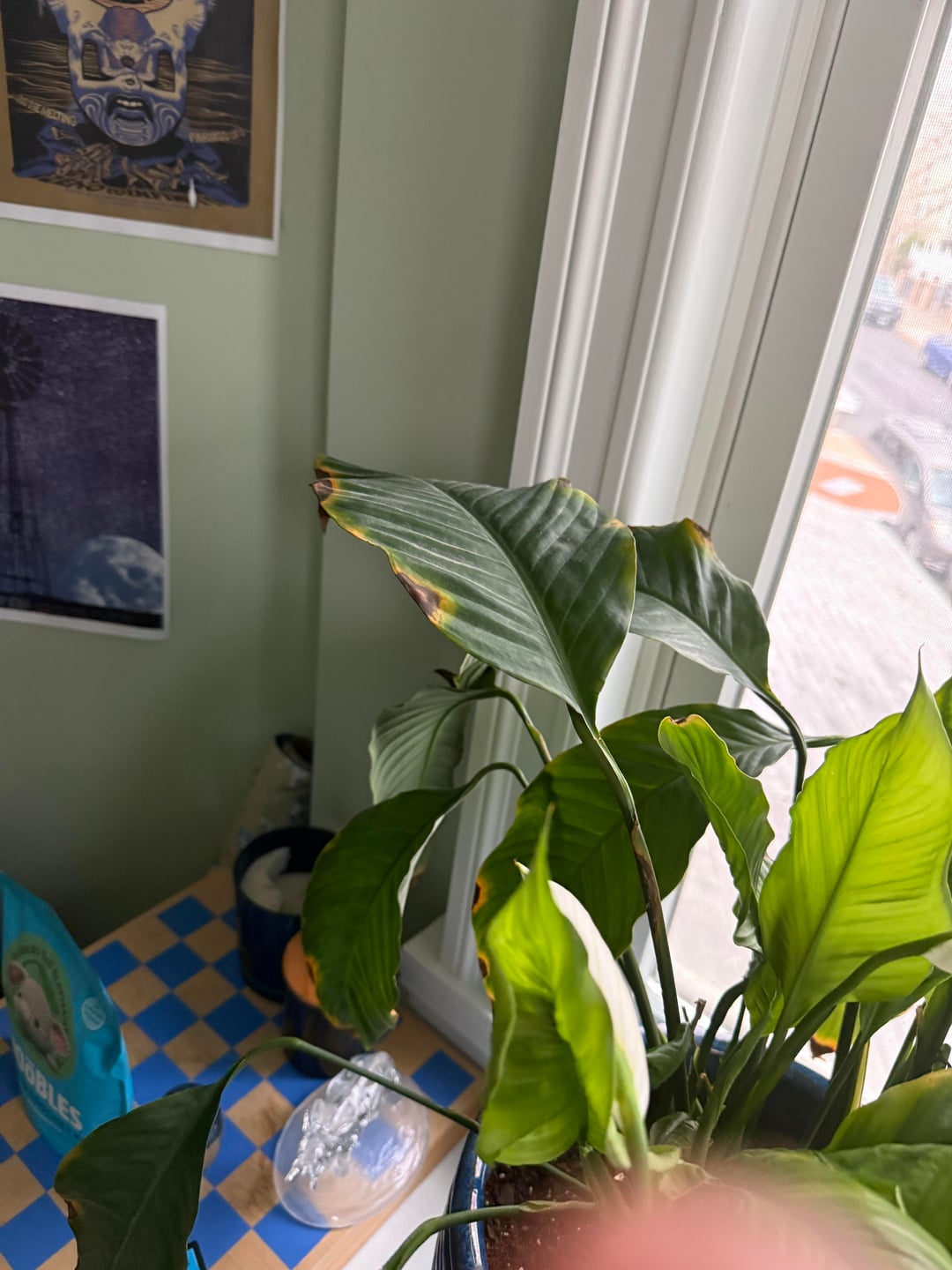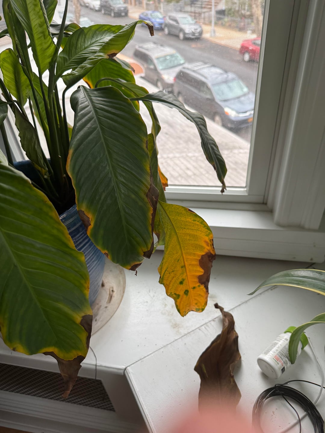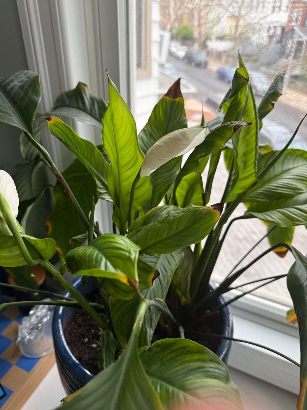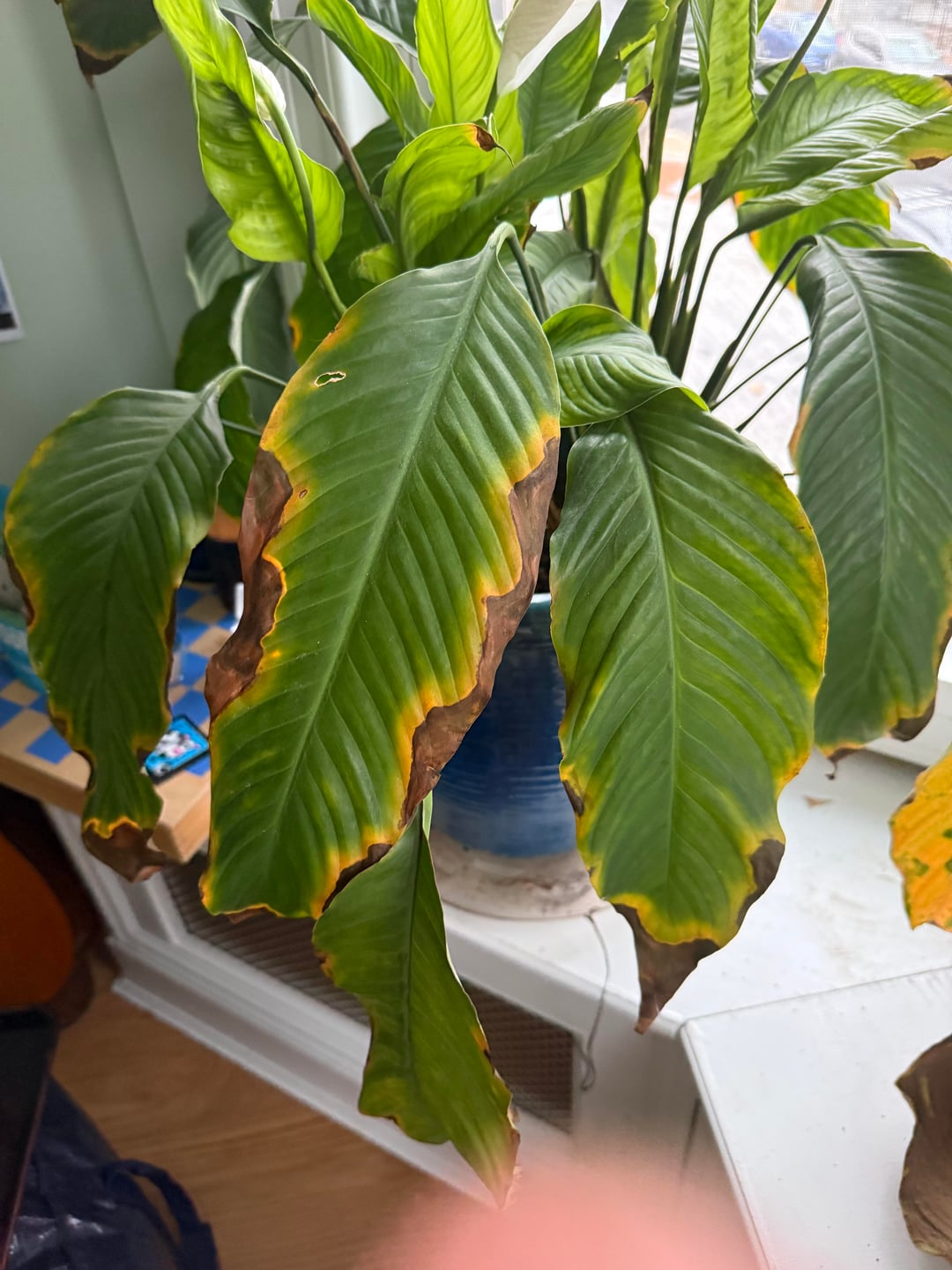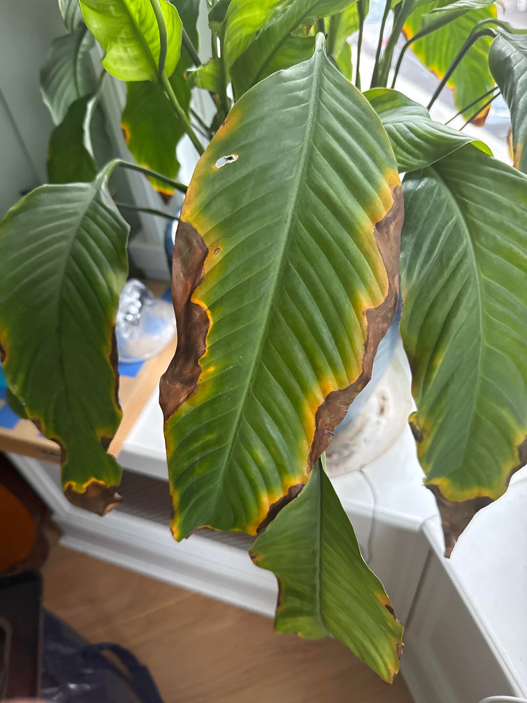 葉の端が茶色になったこの植物の何が間違っているのかわかりません。定期的に水やりをしていますが、多すぎません。水やりが多すぎるのか、それとも水やりが不足しているのか、それとも他に何かあるのか誰か教えていただけますか?この植物は花を咲かせており、北向きの窓際にあり、適度な光が差し込みますが、過剰ではありません。ありがとう!