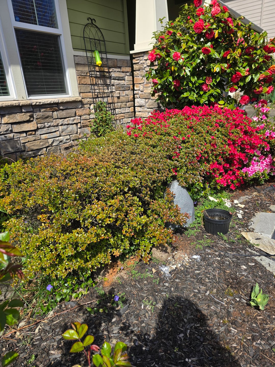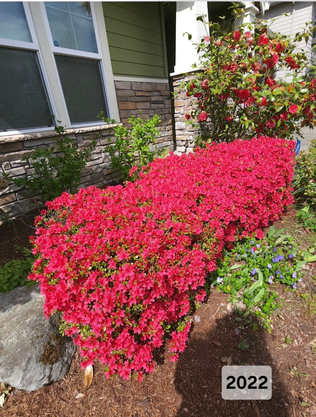 2022年と今の私のツツジです。過去 4 年間、これらの茂みは片側だけで咲いていました。 私がやったこと/起こったことをいくつか覚えています: ・一度トリミングしてみました(厳しすぎるかも?) · ウサギは下に穴を掘り、そこに赤ちゃんを産みました なぜこれが起こっているのかわかりません。剪定は彼らに衝撃を与えたのだろうか?うさぎが根を傷つけたのでしょうか?それは後から現れただけの太陽の問題でしょうか? よろしくお願いします。ありがとう