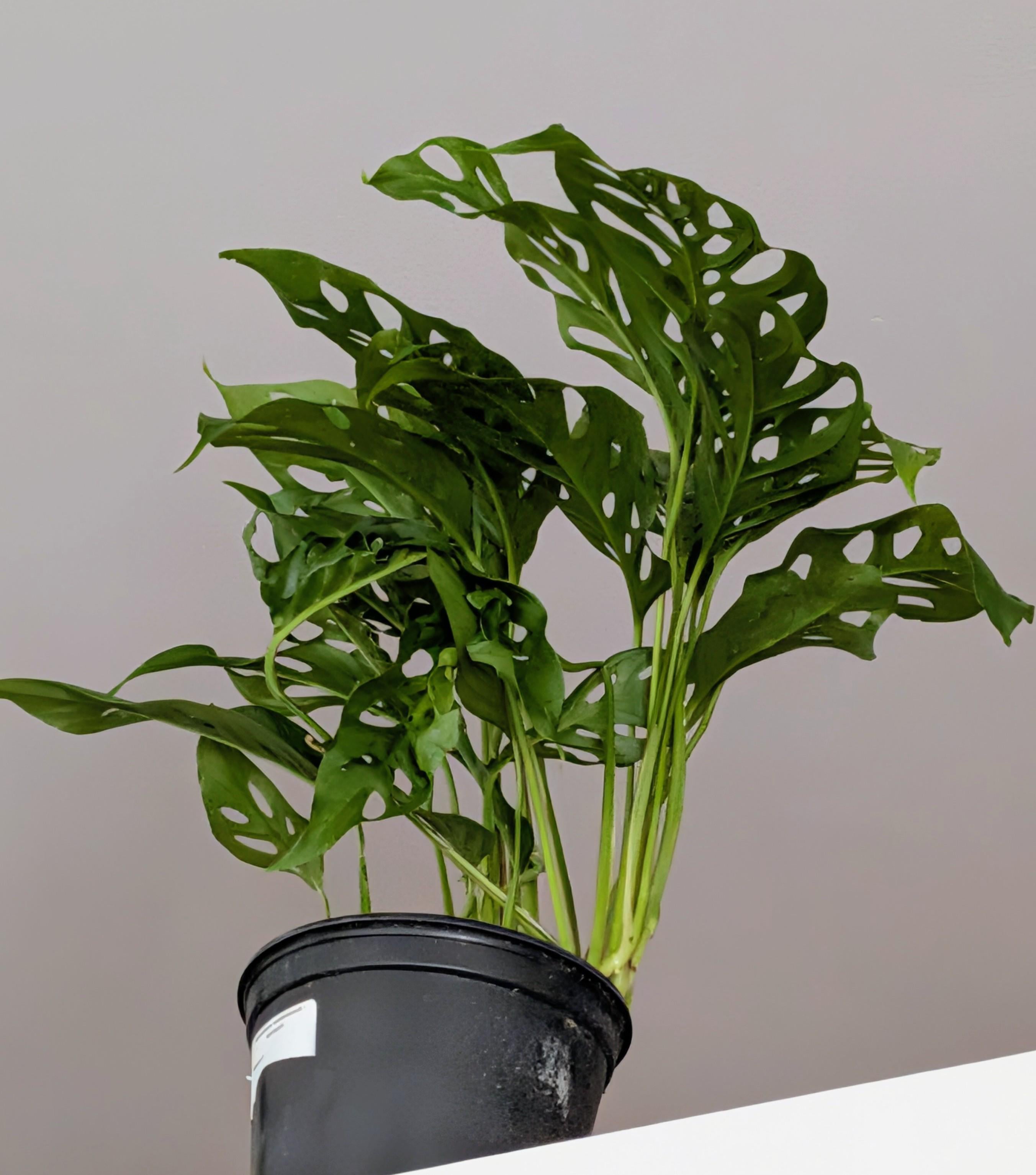 直立して育ったモンステラ アダンソニーを入手しました。下に向かって伸びて欲しいです。登るサポートや表面がありません。
