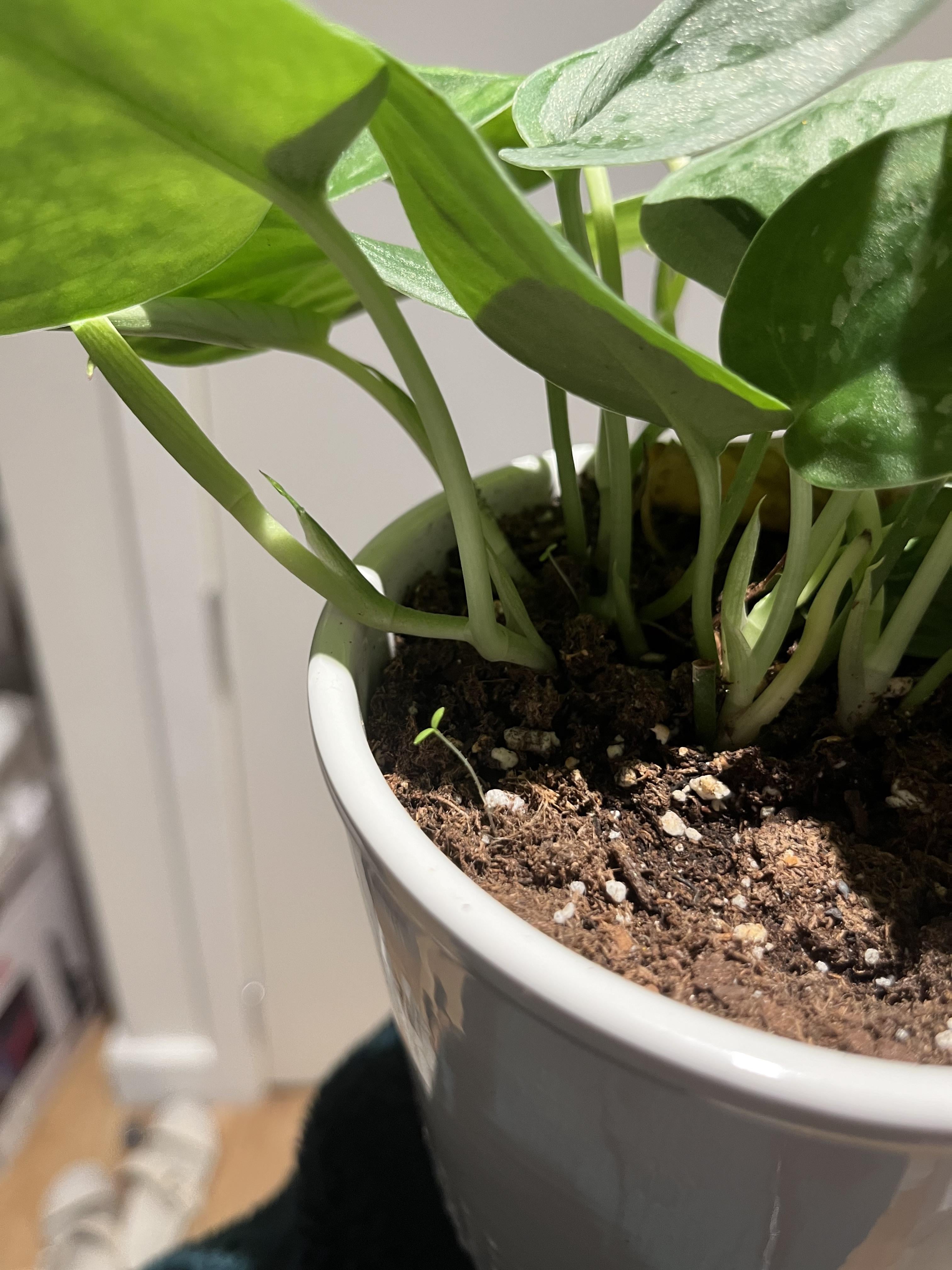 この小さな植物を約2週間育てていますが、今日小さな雑草の芽が2本出ていることに気づきました。誰かアドバイスはありますか?私はこれまでこれに対処したことがありません。