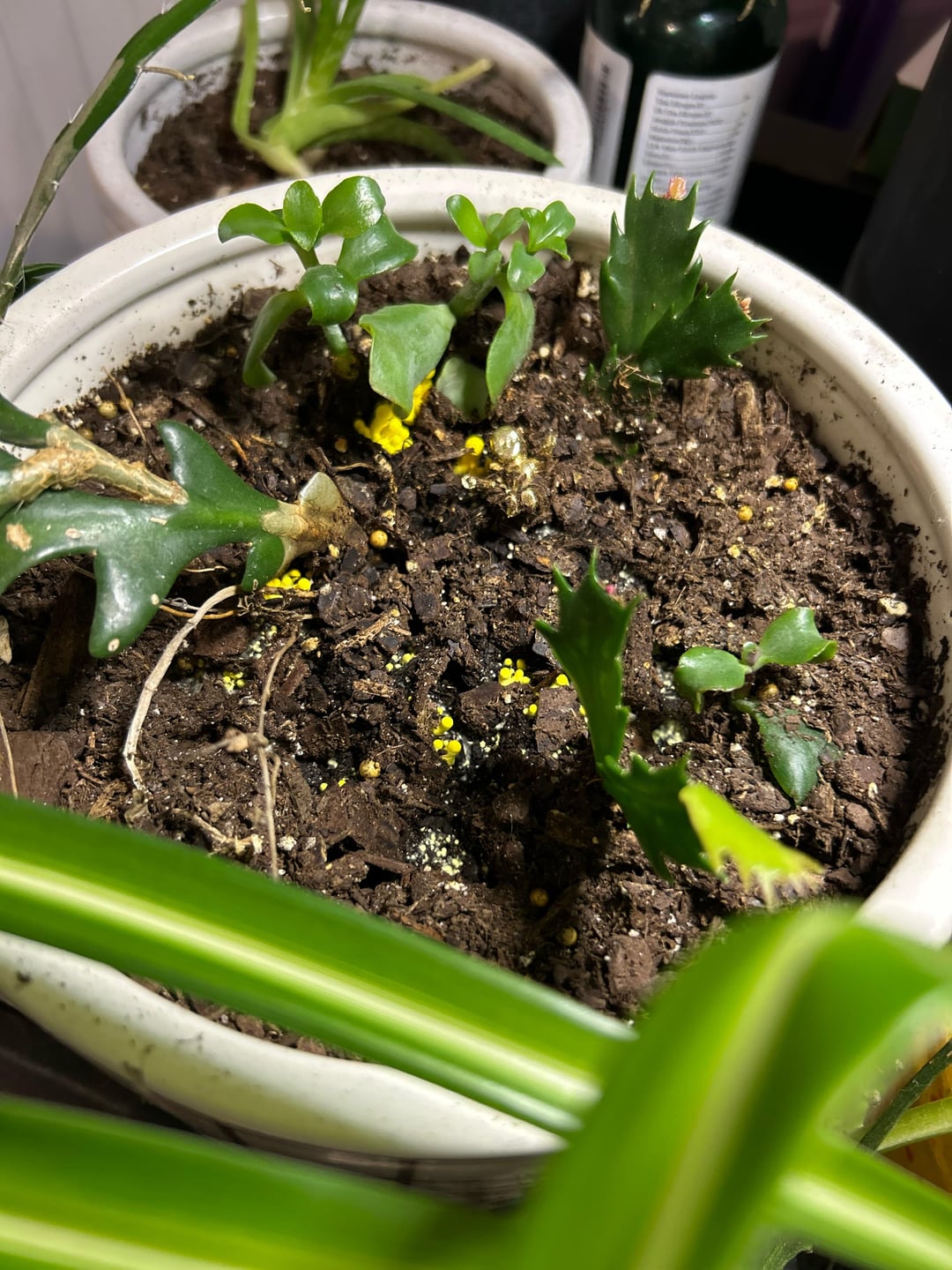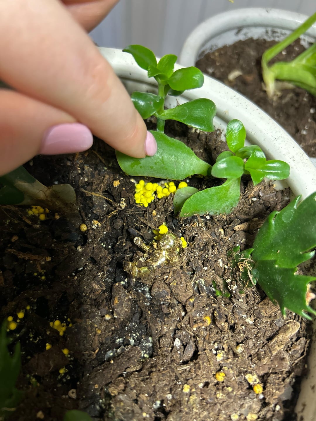 皆さん、これは何ですか?黄色い菌みたいです。それについて何かをしたほうがいいでしょうか?植物たちは気にしていないようですが、私は心配です。
