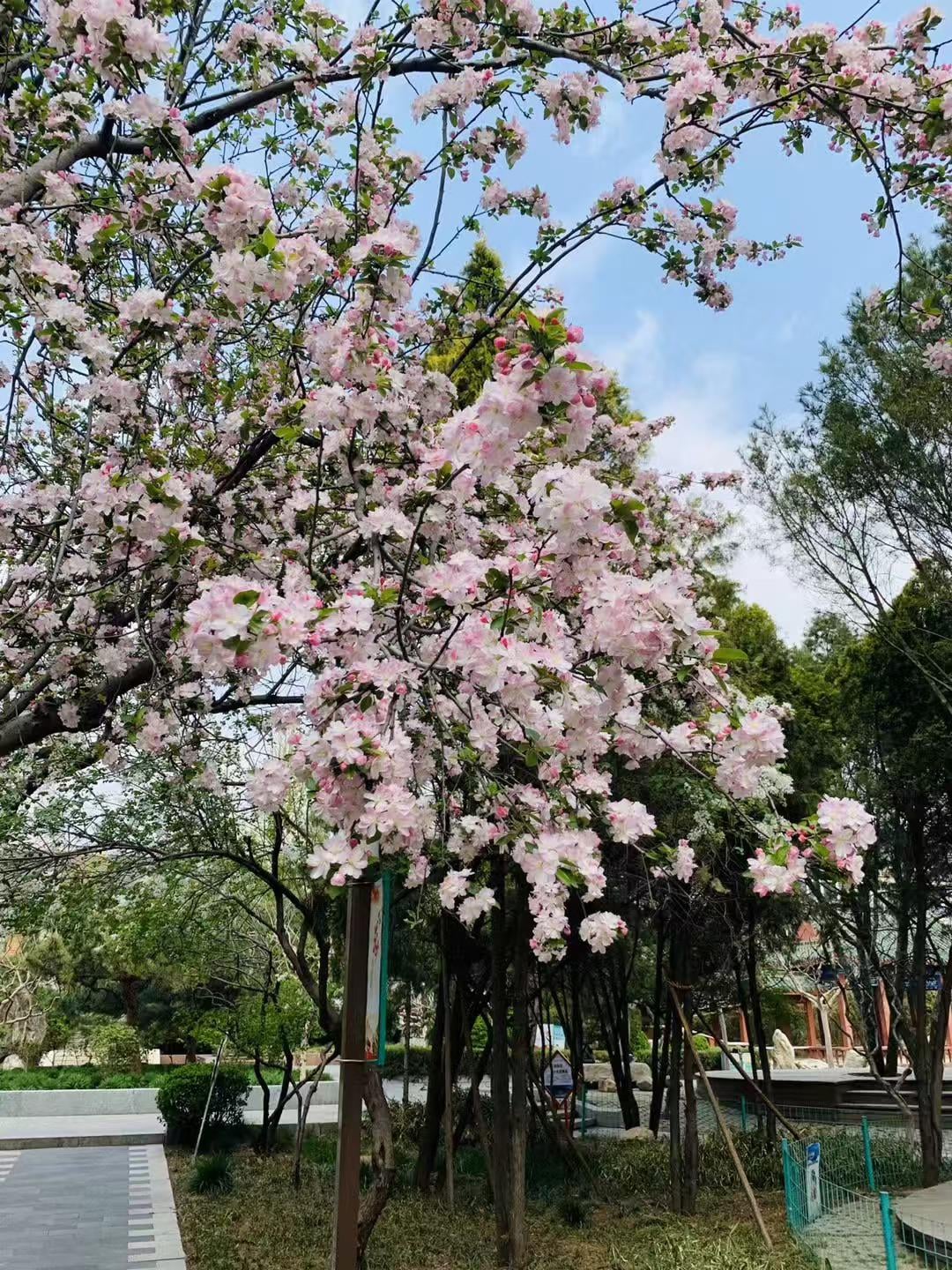 ピンク色の花が枝が見えないほどたくさん咲きます。その下に立って見上げると、春に包まれているような気分になれます。空気までほのかに花の香りがします。この木は花が咲いた後に実がなるか知っていますか?