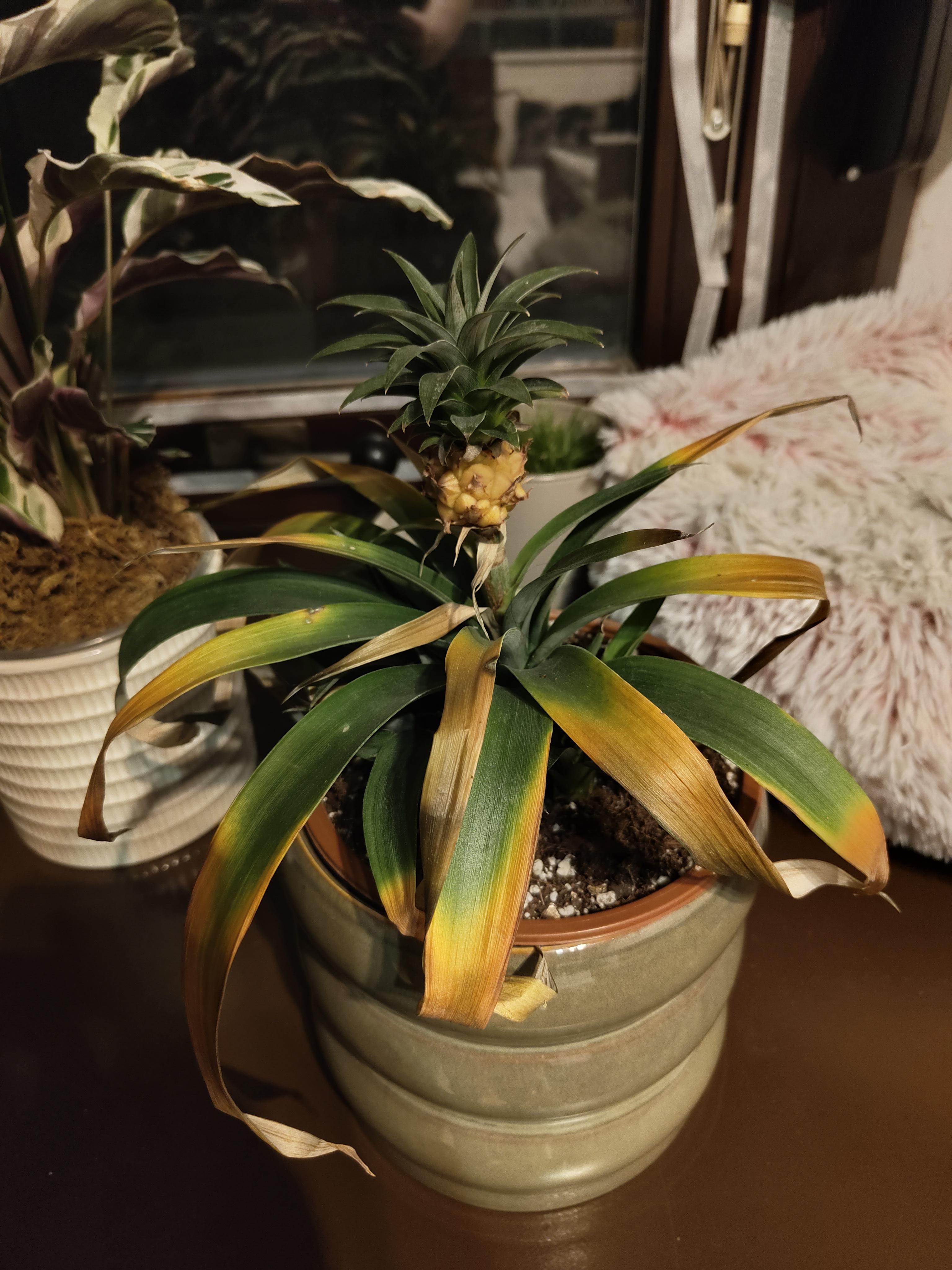 先週このアナナスプラントを入手したのですが、今ではすべての葉が黄色くなっています。助けてください?