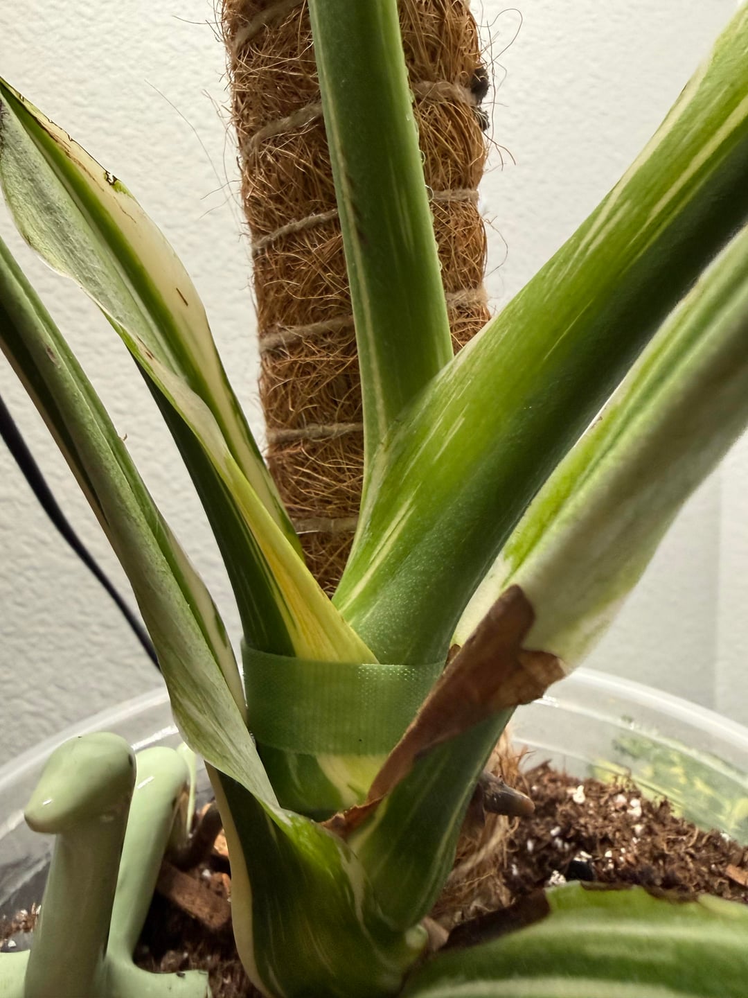 新しい葉は外側を向いていますが、植物が幸せそうに見えるかどうかはわかりません。私はモンステラを初めて使用するので、アドバイスをいただければ幸いです。きちんと結ばれているかどうかも知りたいです。