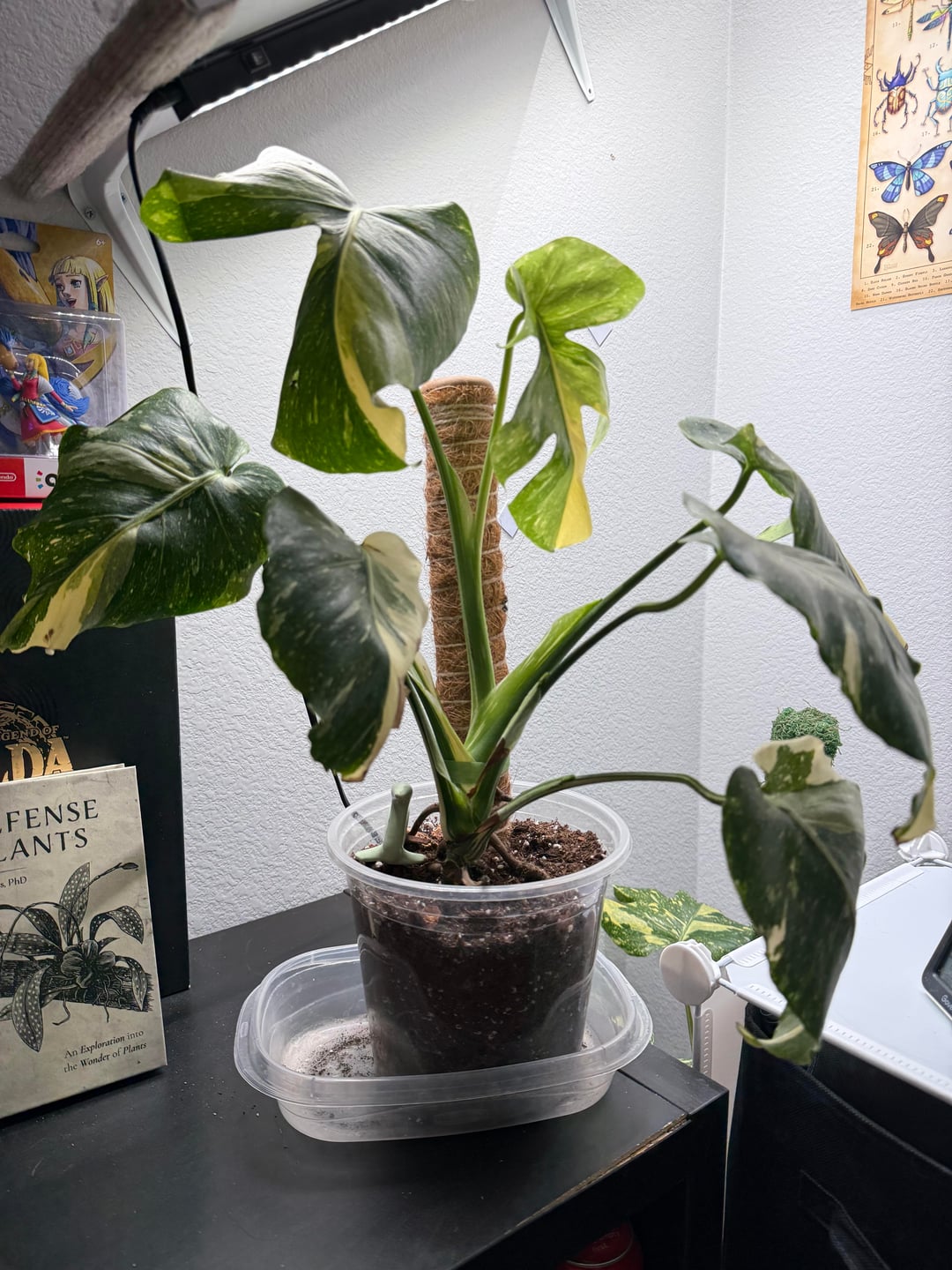このモンステラはロウズから 15 ドルくらいで買ったんですが、見た目が悲しくて一文無しだったからです。葉はしわだらけで奇妙に見えましたが、改善されたようですが解決されていないようです。