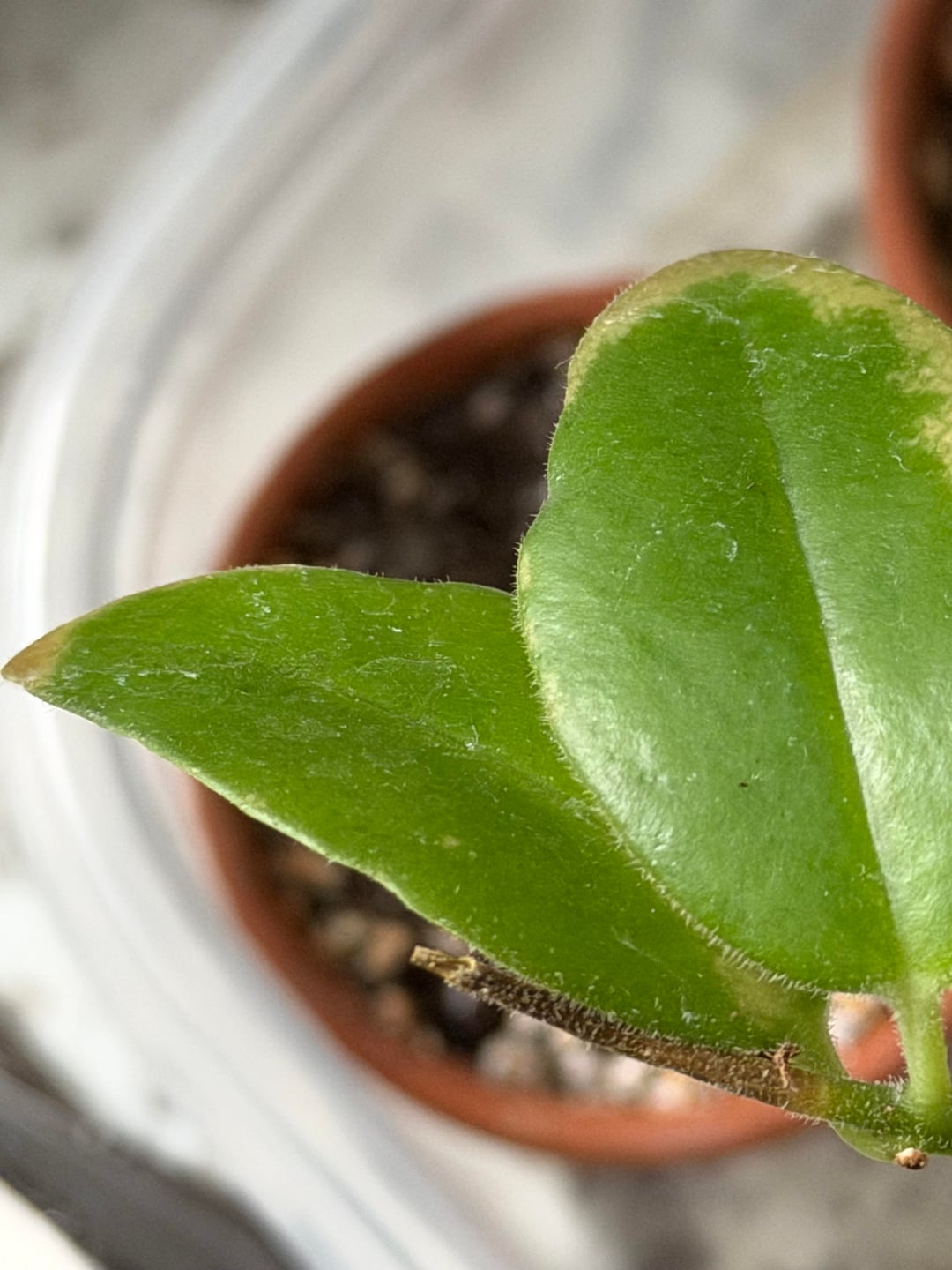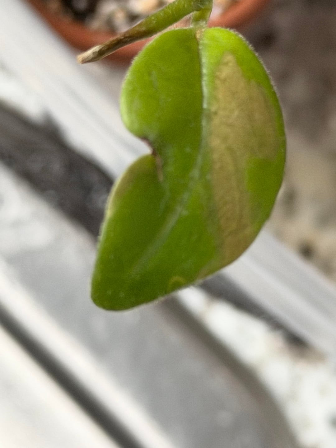 また、1枚の葉の色の変化に気づき、今日では2枚の葉が変色しています。今、コナカイガラムシのようなものが蔓延しているのが見えます。