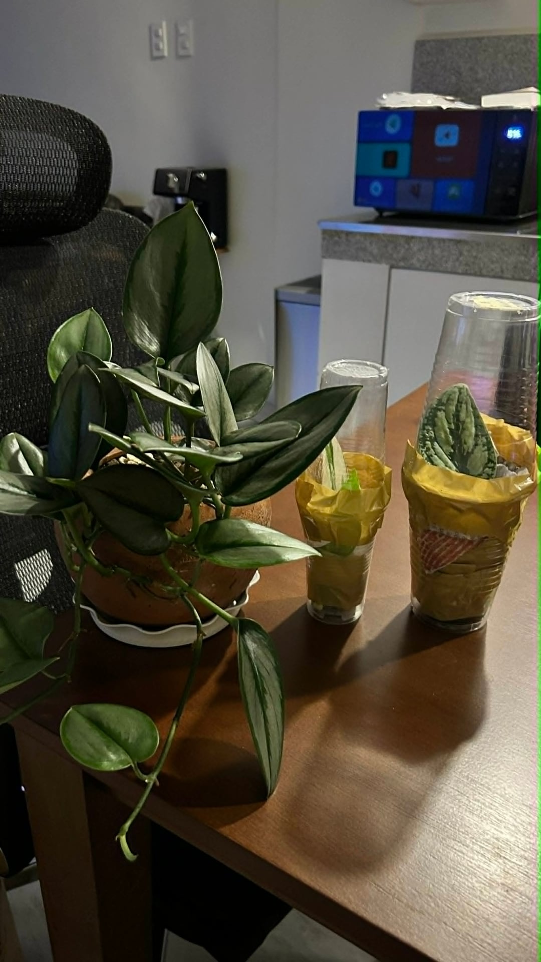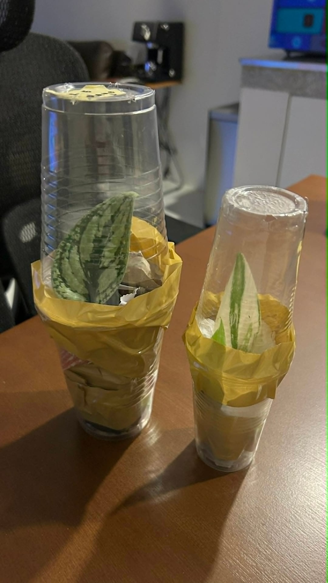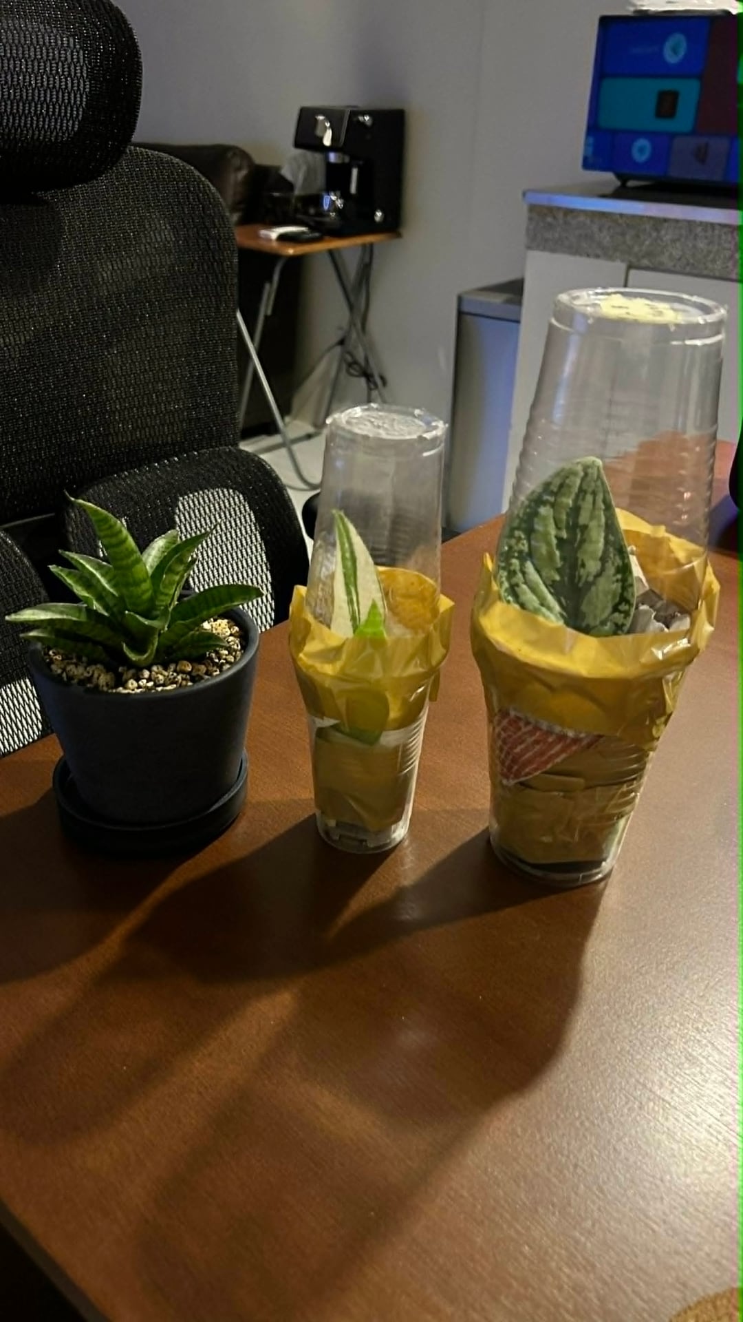 これらの小さなスターターに推奨するサイズの鉢はどれですか、どのような鉢植えの混合物が最適ですか、移植後すぐに水やりをする必要がありますか、そして植え替えの時期を通常どのように判断しますか?サイズの参考のために、ヘビプラント、月光、マグカップの隣にそれらの写真を追加しました。