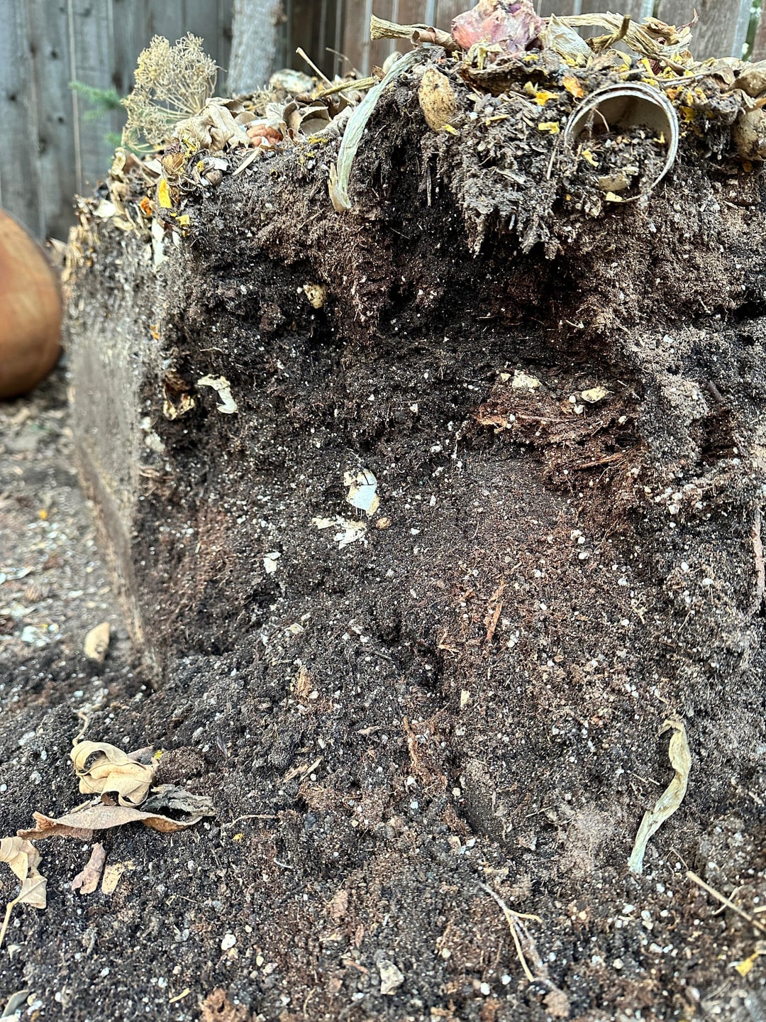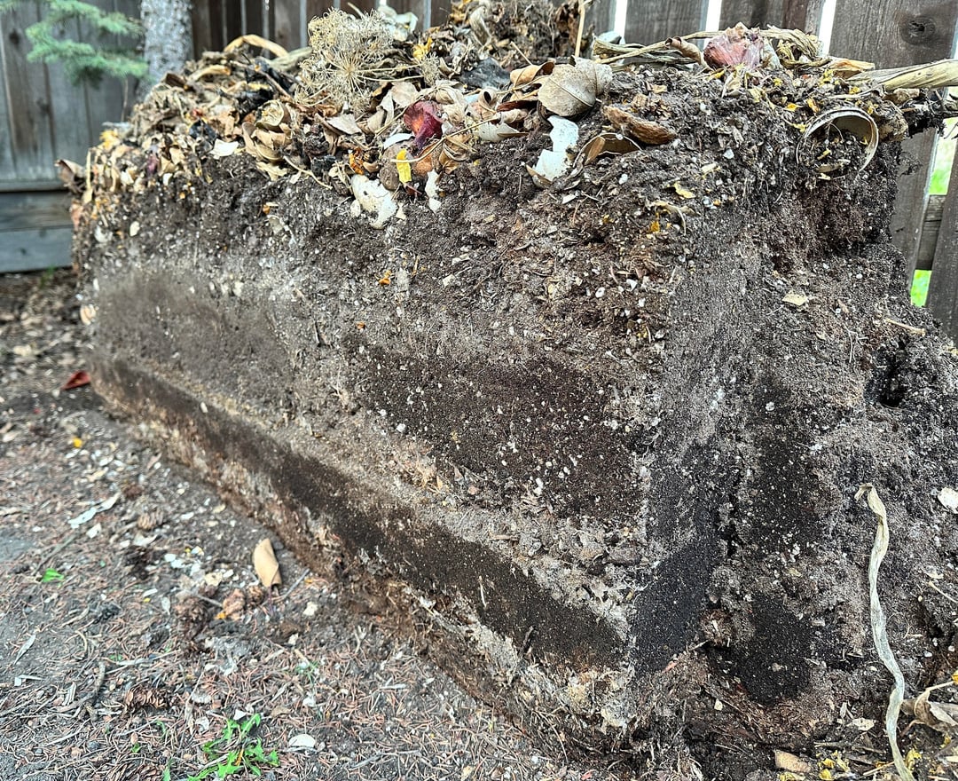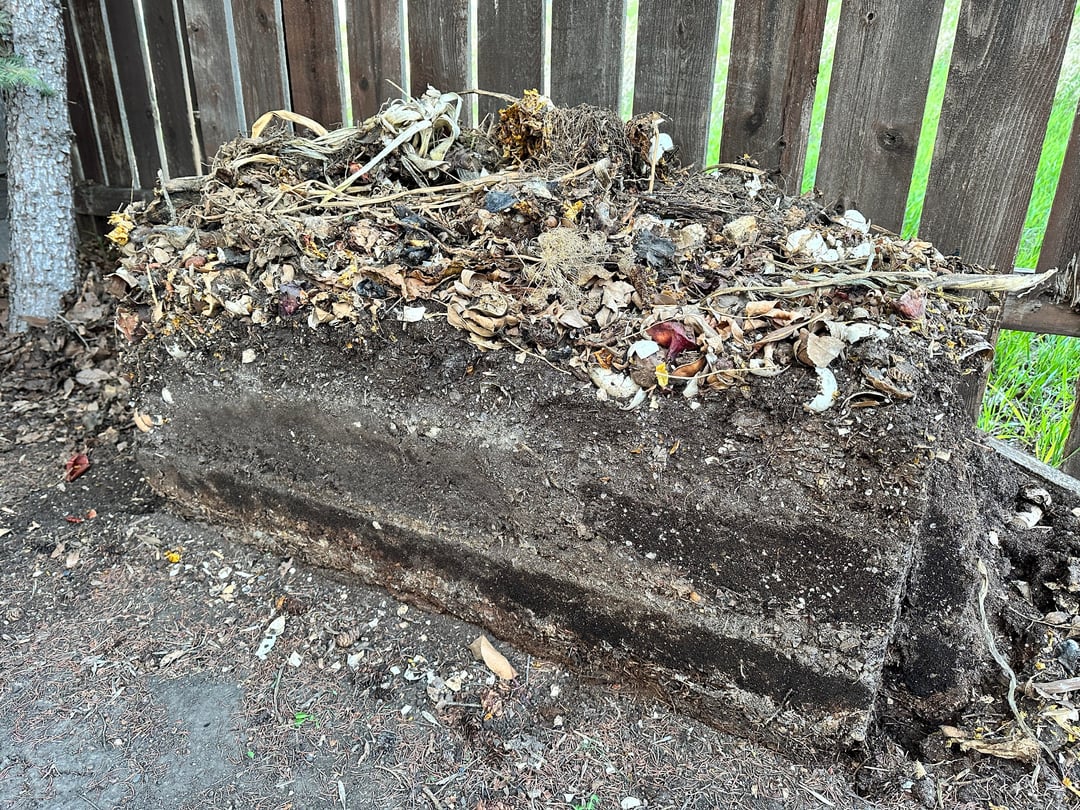 2 年間の生ゴミが完璧な層状の堆肥に変わりました – 成長した花は本物ではありませんでした