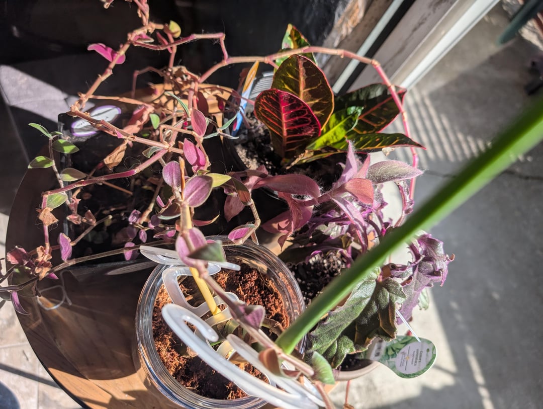 私の植物はもう一つの冬を乗り越えました!これらの多くはルームメイトから引き取られたものです。彼らが生き残っている間、私はまだ学んでいます。多くは本当に繁栄していませんが、私には東向きの窓が1つしかありません。半分は太陽の光で、もう半分は太陽の光です。ただし、個人的な勝利もいくつかあります。ヒント、考え、アドバイス、植栽スタイルなどを歓迎します。