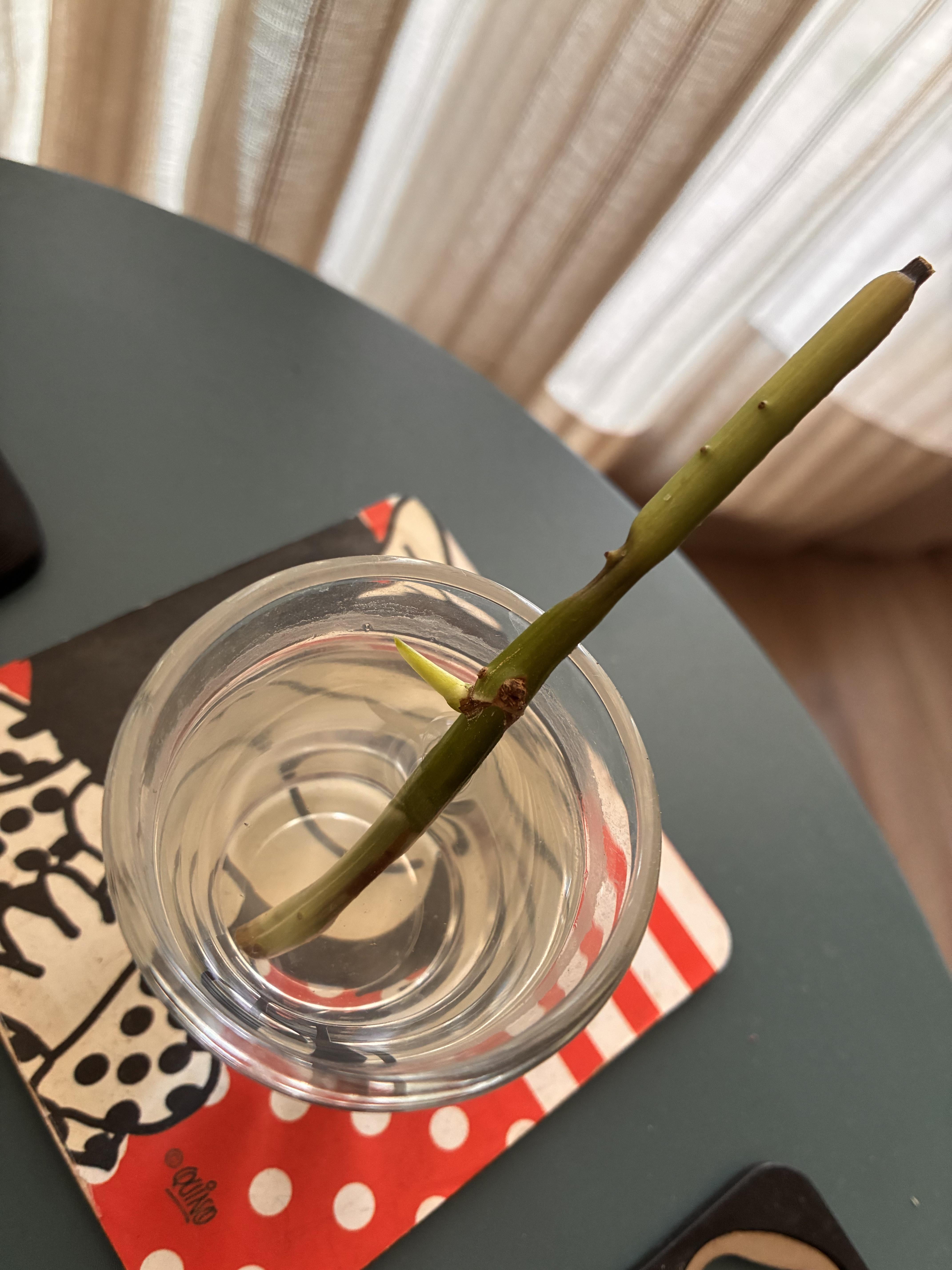 私は助けが必要です。数か月前からポトスが枯れ始めました。使った土が水分を含みすぎていたらしく、それと知らずに水をやりすぎてしまったようで、今は元気に戻すために全力を尽くしています。 その過程で、見栄えの悪いいくつかのセクションを切り取らなければなりませんでした。それらの切片の一部を取り出して水の中に置きました。今は写真のような芽が出てきています。この新芽はどうすればいいでしょうか?それは葉ですか、それとも根ですか?植物のことはあまり詳しくないので、うまく育てていきたいと思っています。