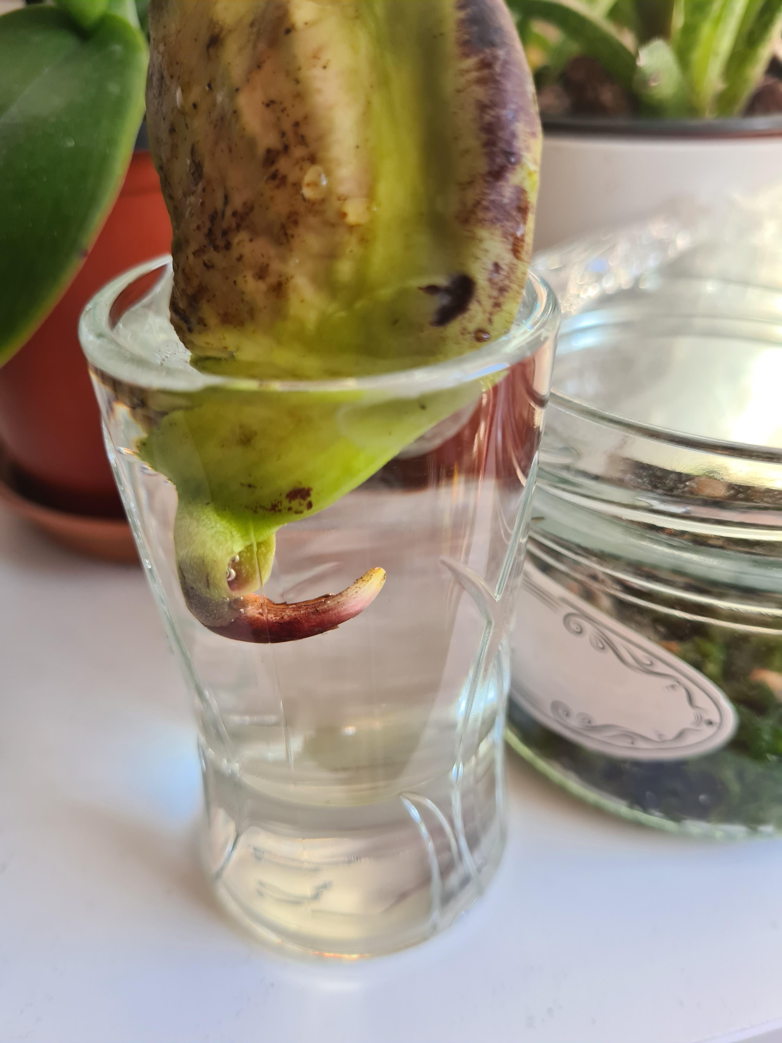 発芽したマンゴーの種をこのように水の中に放置しても大丈夫でしょうか?