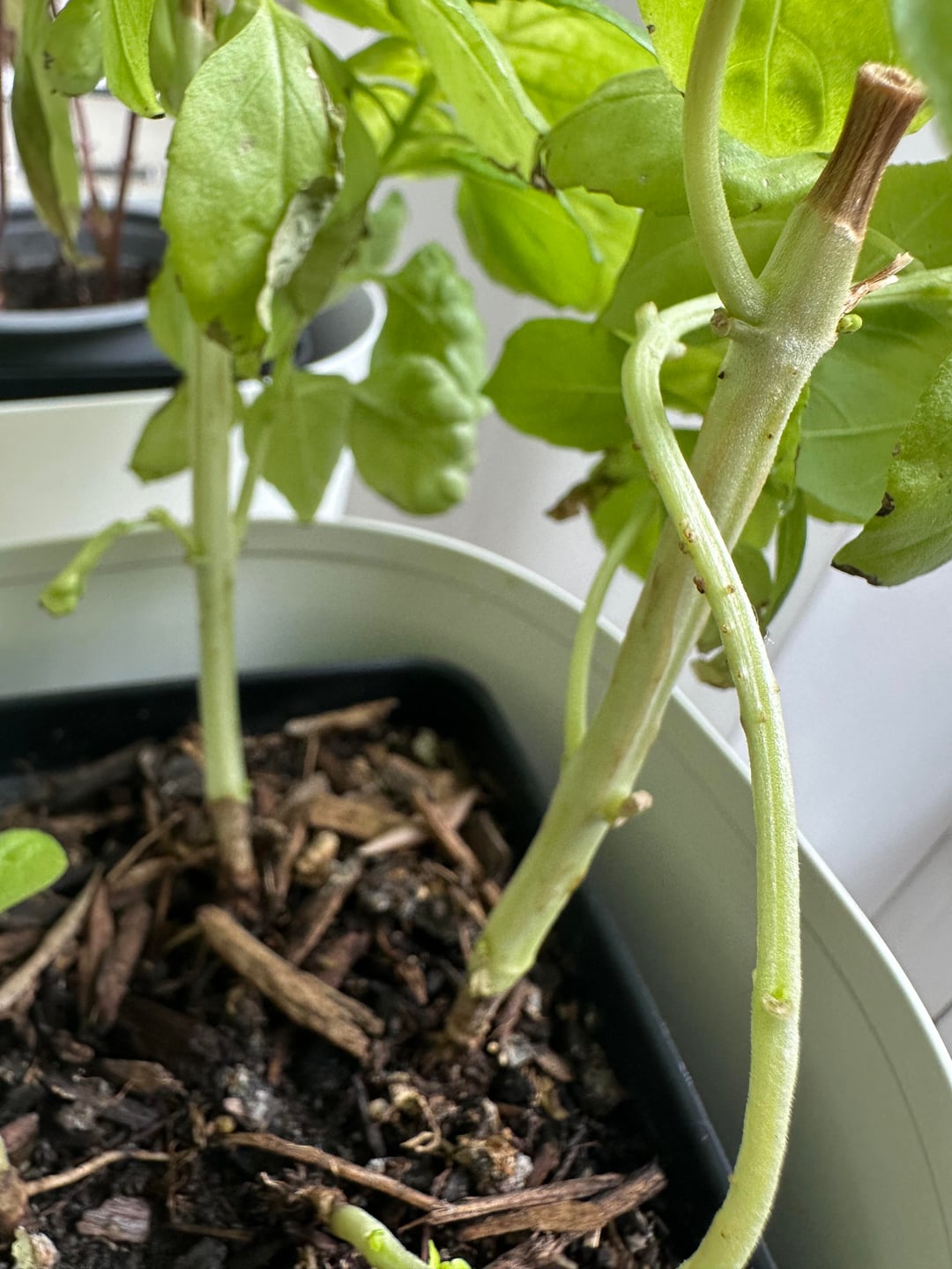 こんにちは!茎に黒い点がいくつかあるバジルの苗があります。それらは取り除くことができますが、それが植物の一部であるのか、それともある種の感染症/蔓延であるのかは明らかではありません。アドバイスよろしくお願いします!