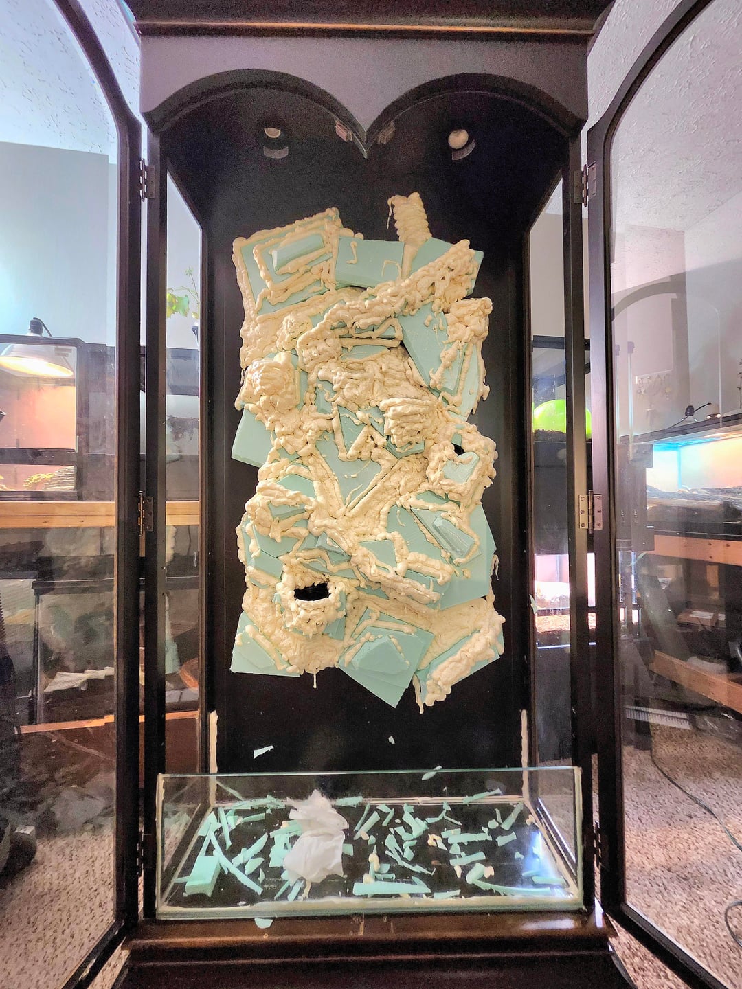 丸1年かけて骨董品のキャビネットからトロピカルなディスプレイを作りました。最後の写真は最新のものです