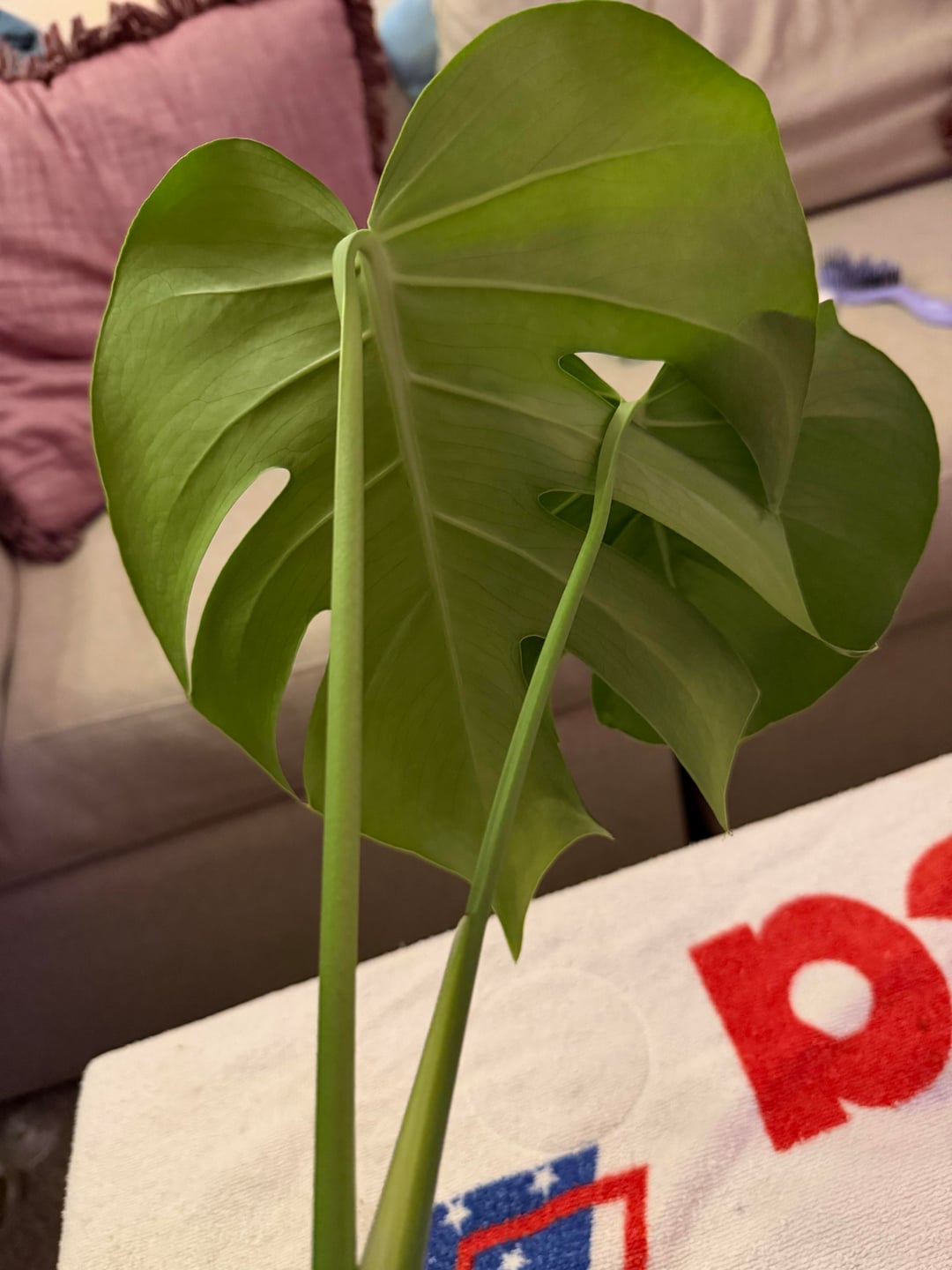 私の最初の考えは、大きな繁殖葉は最終的に枯れて、ポットを回転させて自然に分離できるようにするというものでした。結局のところ、後ろの大きな男はタフで、すぐに死ぬとは思えません。また、突き出ているため、何かにぶつかったり邪魔になったりすることなく、一方向にのみ方向を変えることができます。これは私の最初のモンステラですが、とても気に入っているので、適切に世話をしていることを確認したいと思っています。