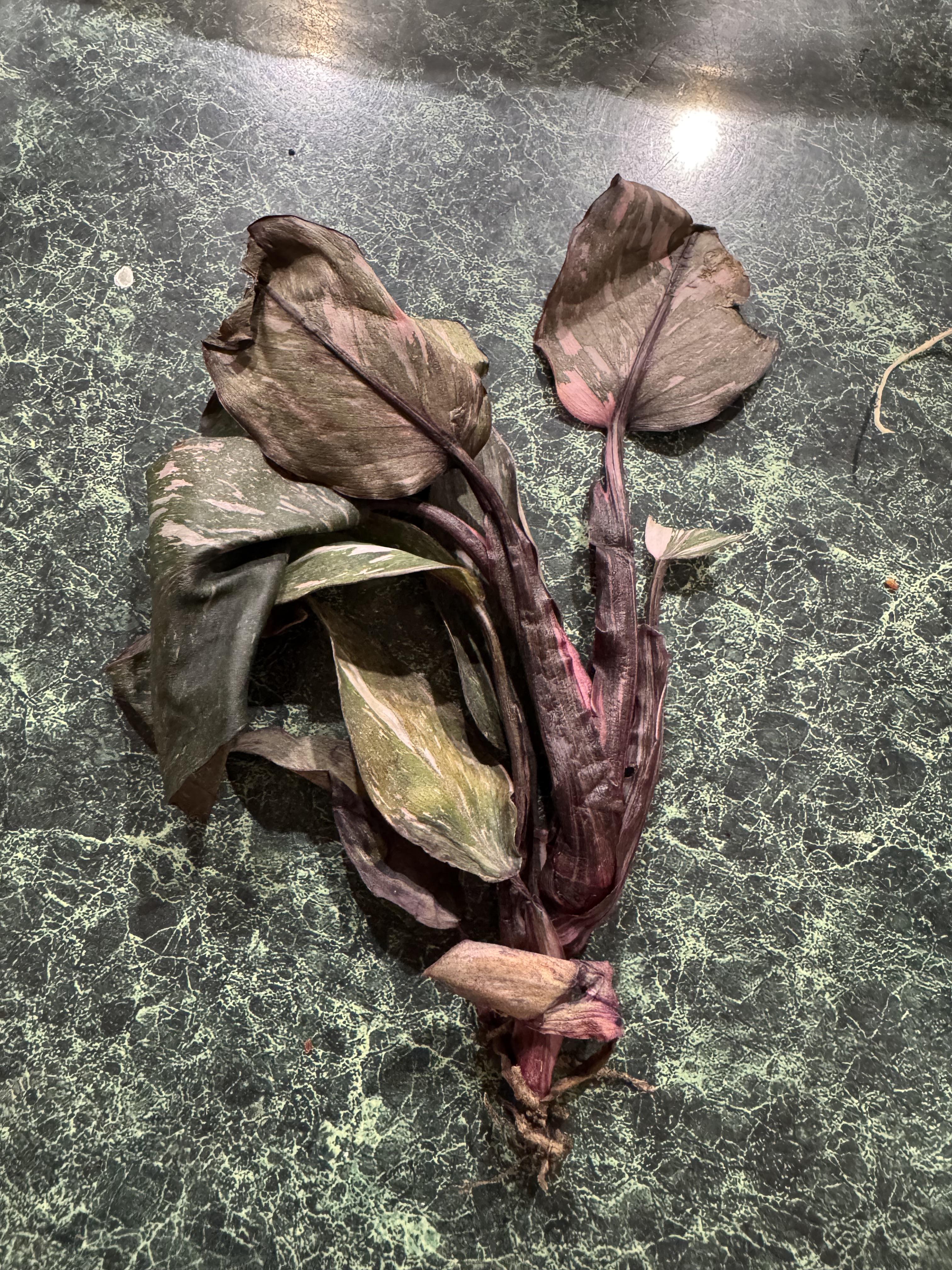 似たような植物が他にない状態で、ウォルマートのゴミ箱に放り出された状態で発見されました。ピンクのお姫様みたいですね。これを最もよく保存するにはどうすればよいでしょうか?すでにカリカリの枯れ葉を数枚取り除いたのですが、茎がしっかりしていません。
