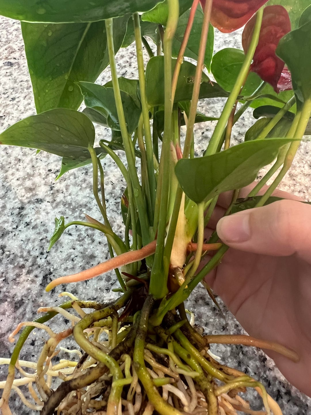 私のフラミンゴの植物に、新しくて長くてピンク色の奇妙なものが生えています