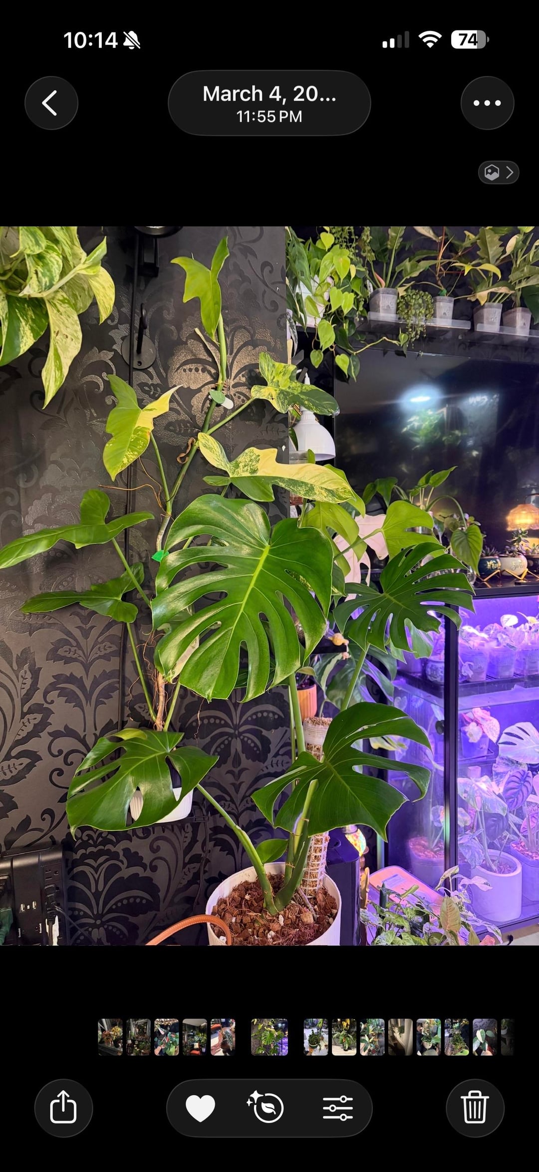 初めて収集を始めたとき、アパートの部屋の中で。私はかつて、これらの巨大で美しいモンステラを持つ人々をうらやましく思い、ただ辛抱強く待っていました。 1年後、私たちはここにいます、彼女は巨大になり、私の中庭の隅全体を占領しています。私が彼女に対してしているのと同じように、辛抱強く接してくれた彼女に毎日感謝しています。彼女はどんな珍しい植物や多彩な植物よりも私の貴重な所有物です。彼女は私の最初の赤ちゃんの一人です🥲 🤍🌱