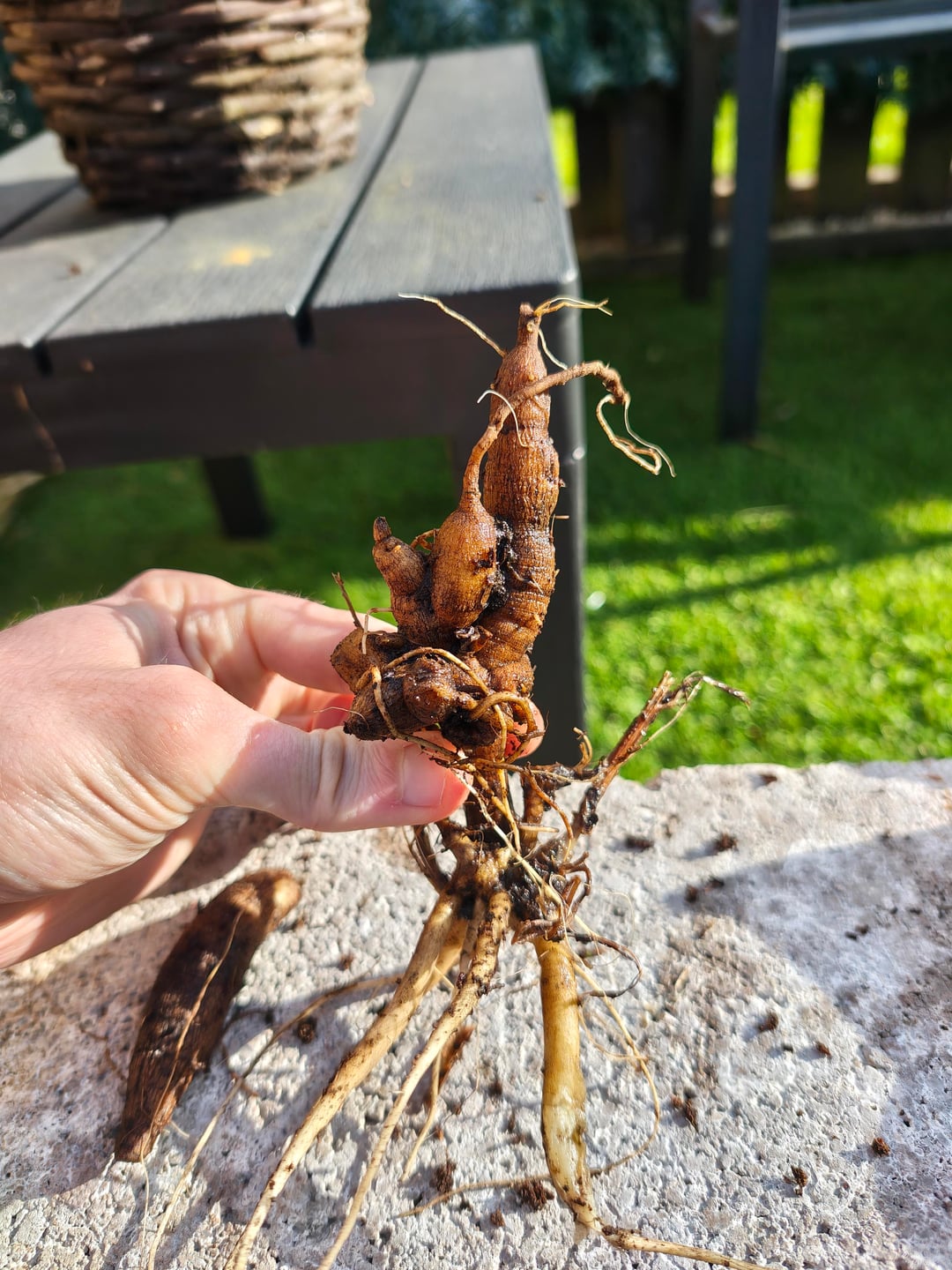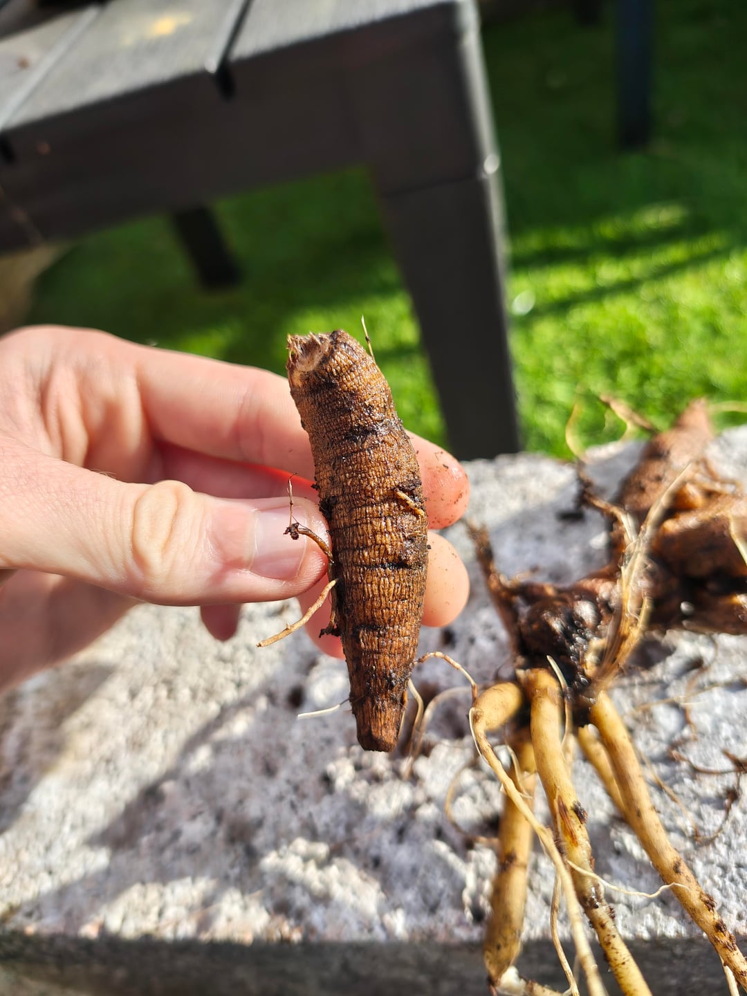 それが何かは分かりませんが、根か塊茎のようなもののように見えますか?でも、先ほども言いましたが、私は何も植えておらず、花壇に平らに置かれているだけです… 庭には、物を掘ったり埋めたりするのが好きなリスがいますが。お役に立てれば、私はイギリスのスコットランドにいます 😅