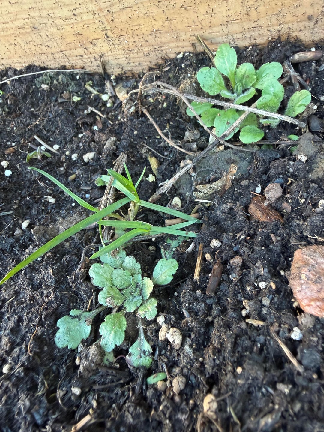 昨年、高設のガーデンベッドを2つ作りました。何も植えていないのですが、芽が出てきました。このアプリはそれらをすべて「双子葉類」として識別するようです。