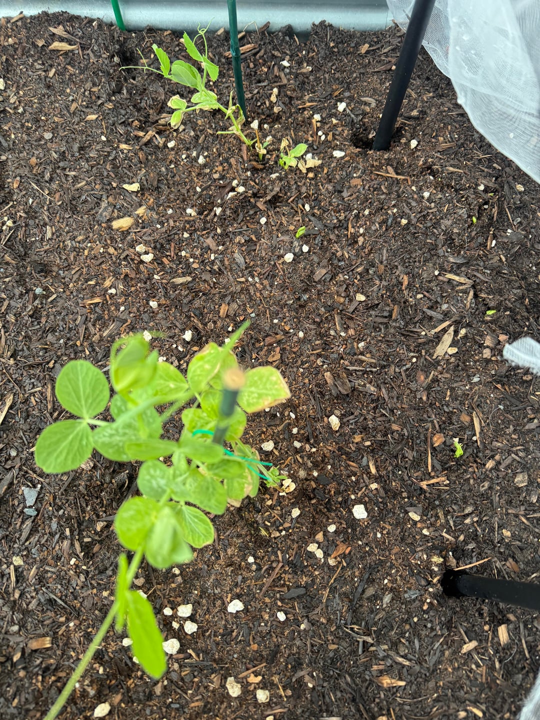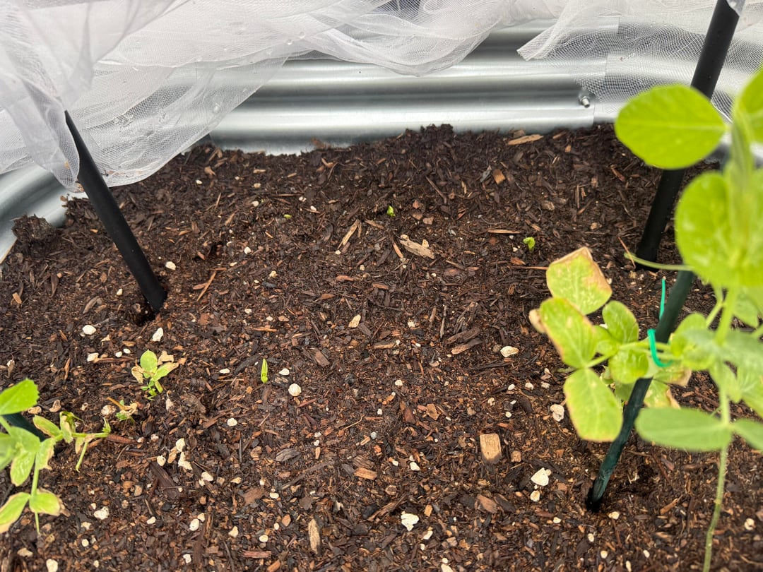 問題は…私は、ベッドの右端に、おそらく 10 個か 12 個の非常に古いエンドウ豆の種を「ああ、どうしてだろう」と放り込んだのですが、まったく育つかどうかは非常に疑わしいものでした。今何が生えているのか推測してください… 🥲 私が投げたランダムなカオス ピースが少なくとも 5 つあります。もっと多くのものが現れると予想し、何をすべきか考えています。放っておいて何が起こるか見てみましょうか?今すぐ削除して移動しますか?彼らが壊れやすい状態にならないように、彼らが大きくなるまで待ってから移動させるべきでしょうか?