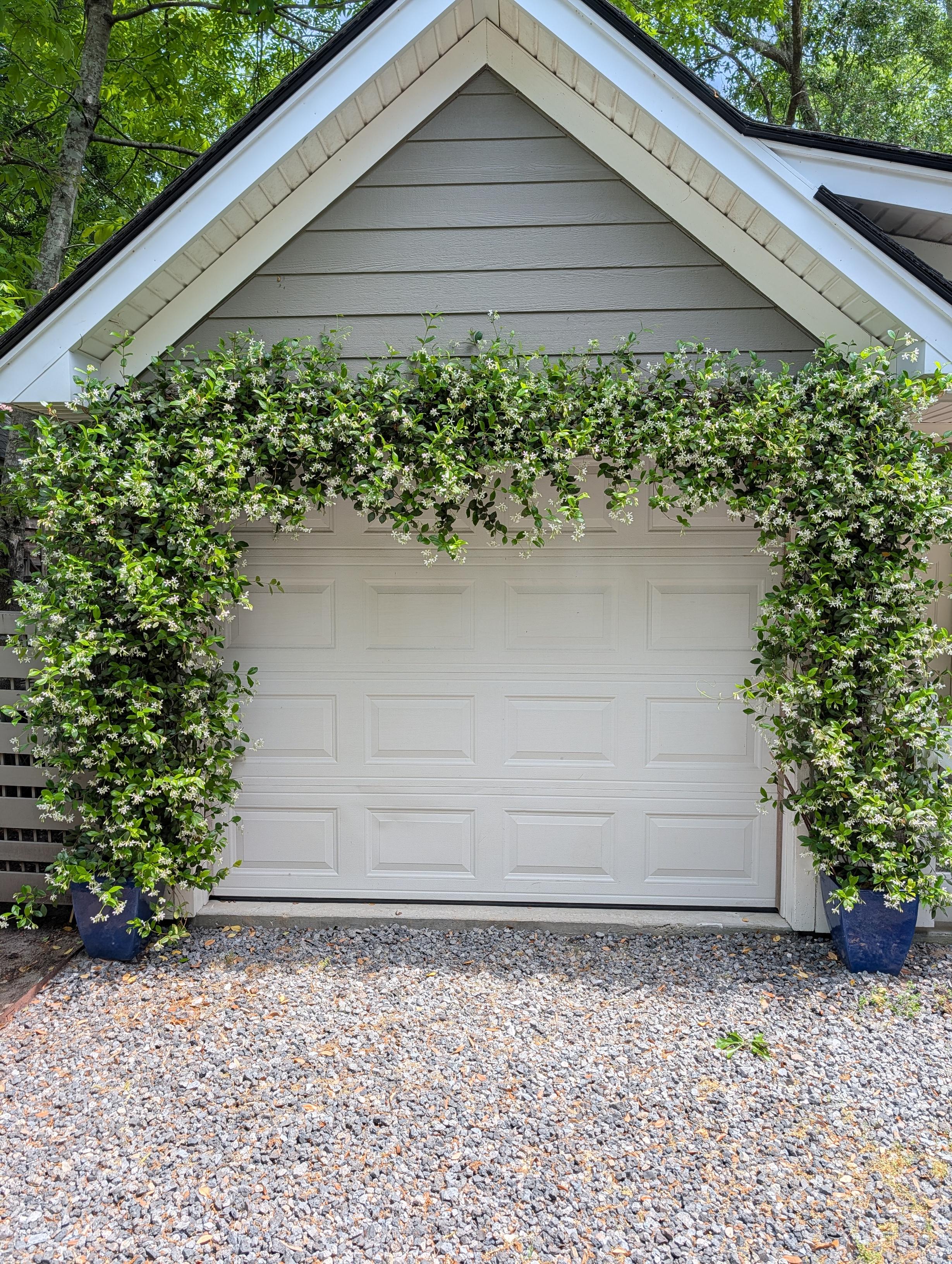 ガレージドアの周りにあるスタージャスミン。この時期、サウスカロライナ州チャールストンのいたるところで見られます。今までで最高の香り。