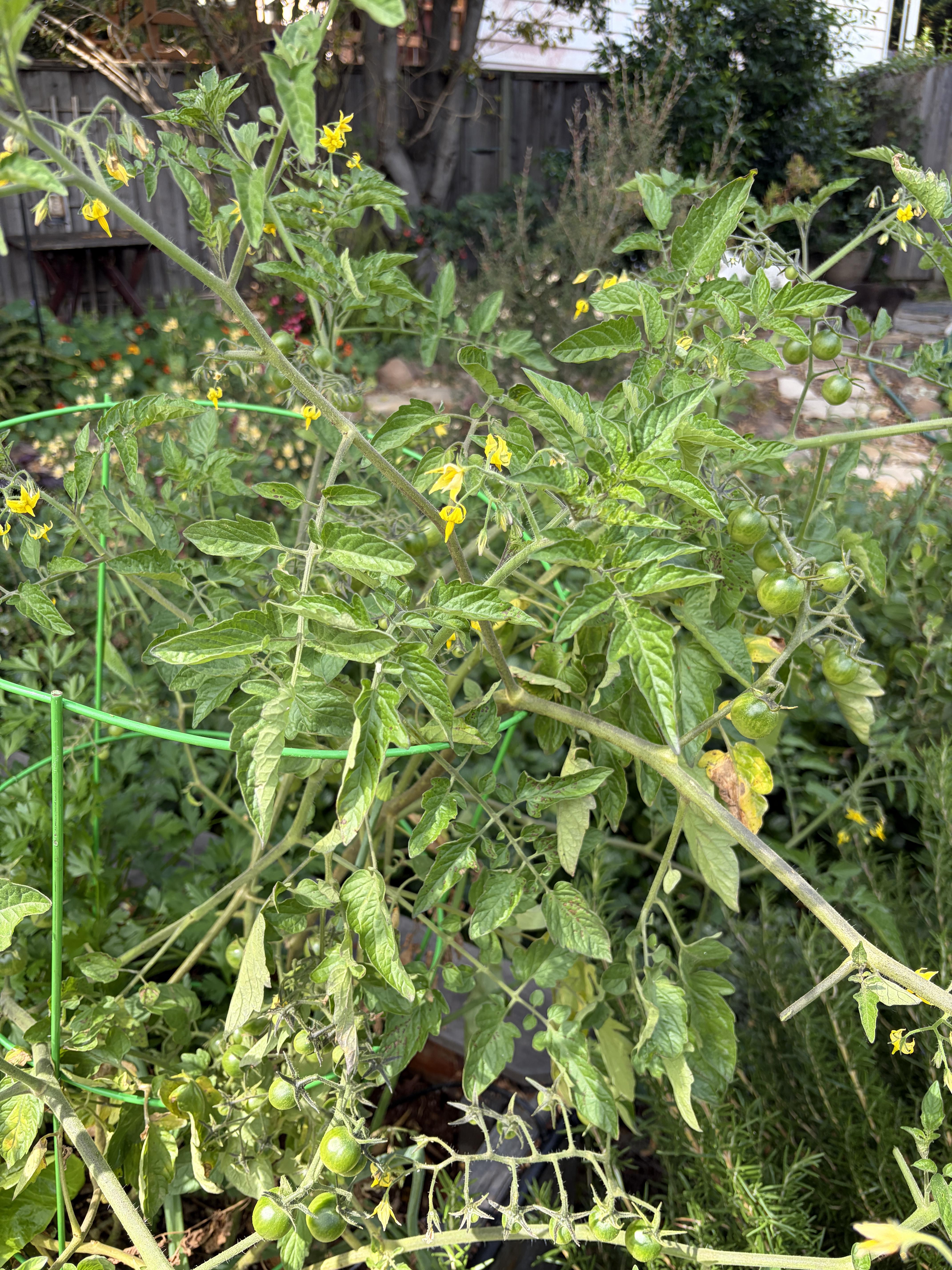 このミニトマトは冬を乗り越えたので、数週間後には熟した実がなるでしょう。