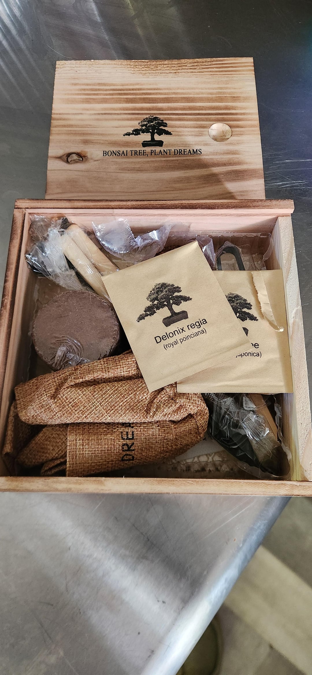 妻が私の誕生日に素敵な盆栽キットを購入してくれました。残念ながら "ジャカランダ" 植物を見れば分かるように、それは正しくありませんでした。より侵略的な安価な種子。私が燃やした種。地獄へ直行。