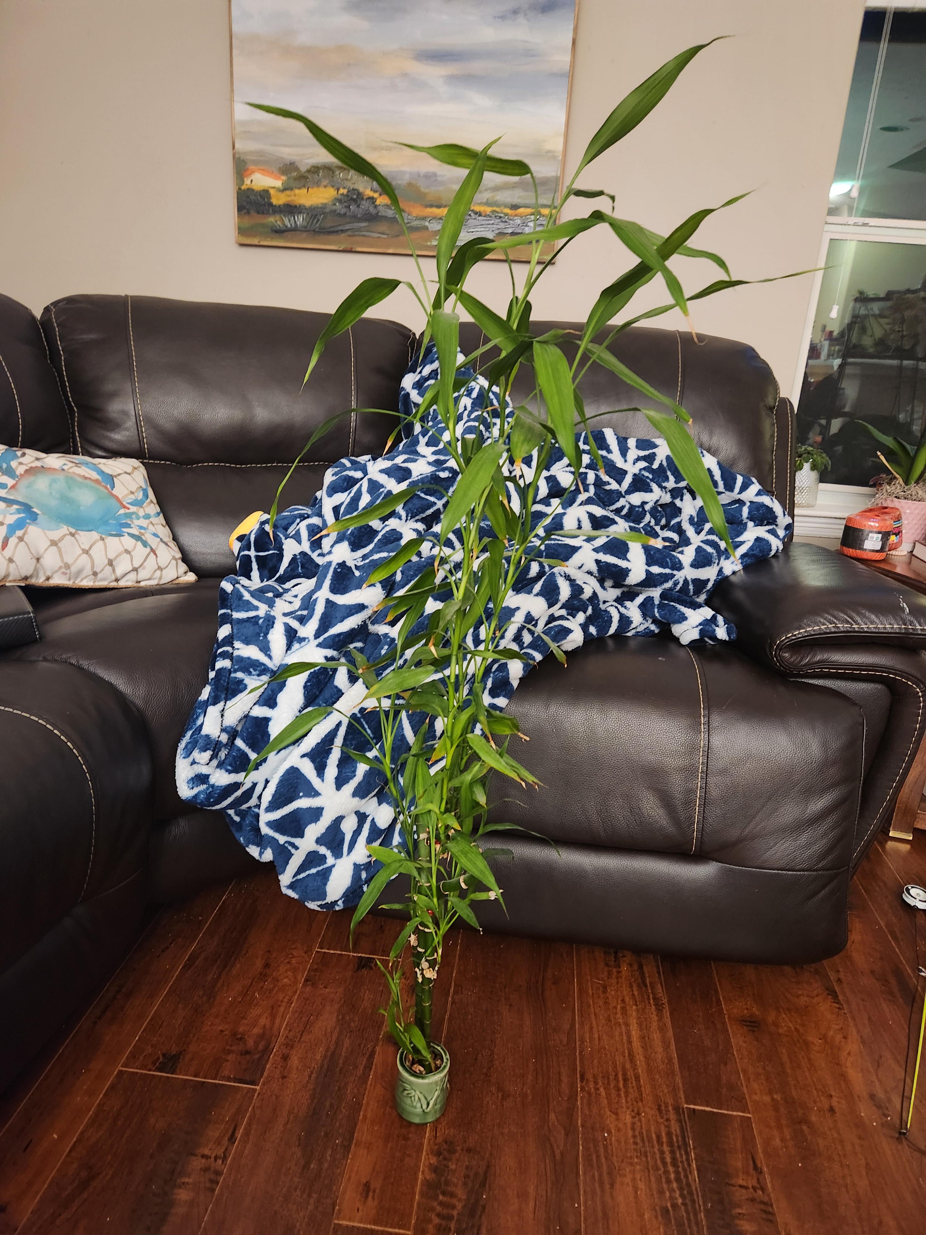 最大の竹に最小の鉢。いつの間にか大きくなって、近々植え替えます。ただ面白いと思っただけ