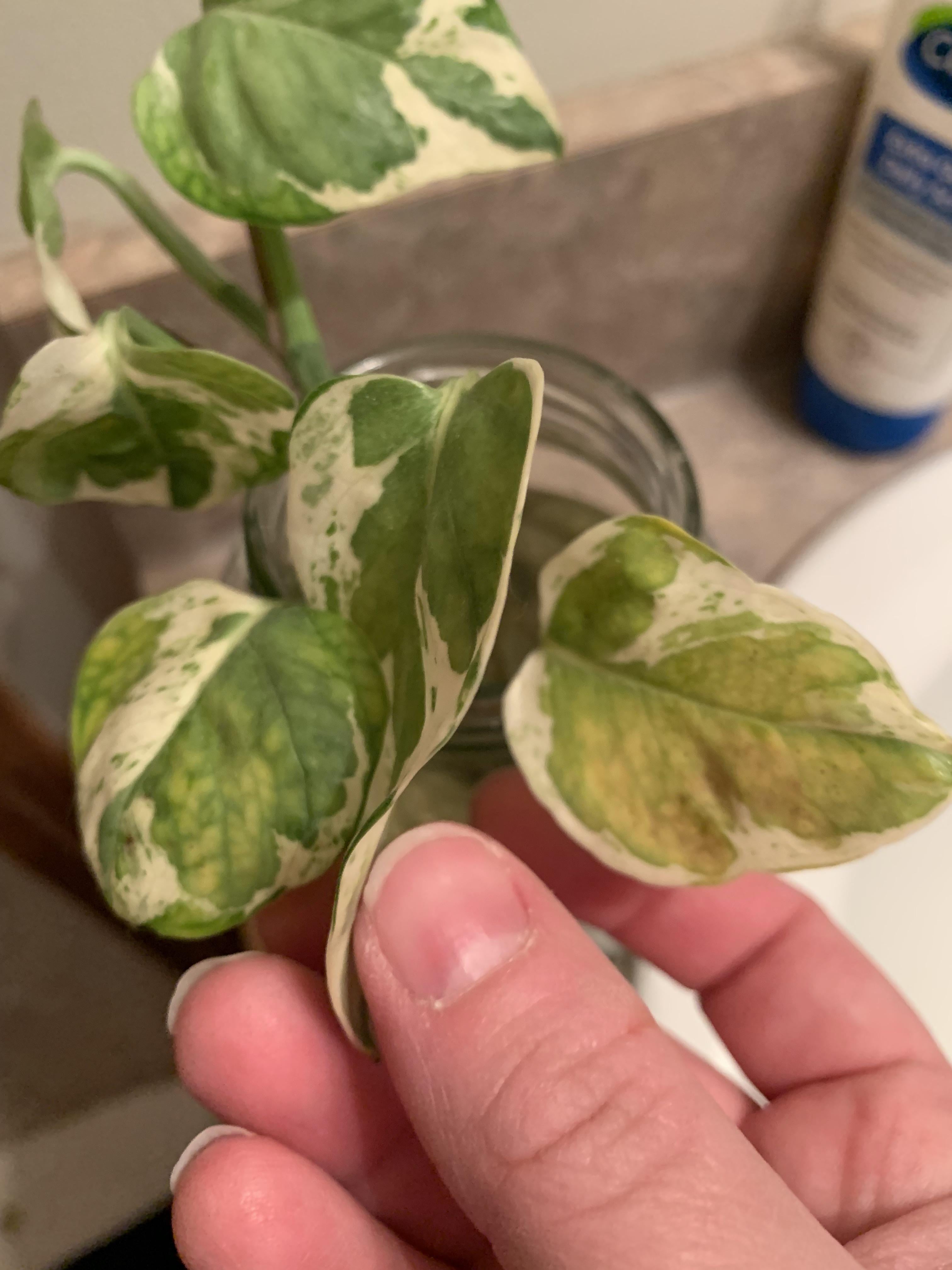 5月からポトスを水やりで増やしています。 根がたくさん張ってあるので、10月に土に植えて約1ヶ月かかりました。 パリパリになったので、同僚のアドバイスを受けて、空気中の湿度が高くなる春まで水に戻すことにしました。 家には軟水があり、硬水の入った屋外の蛇口を使用するには寒すぎるため、毎週水を蒸留水に交換しています。 その決断に本当に嬉しくて、それ以来、二枚の新しい葉を出しました。 しかし、ここ数日で黄ばみ始めました。 いくつかのGoogle検索では、給水支柱の緑色の筋が入った黄ばみに関する情報を見つけることができませんでしたが、それが土壌にある場合、栄養に問題があるように思えますか? 液体肥料を追加する必要がありますか?追加する場合、何を推奨しますか? TIA