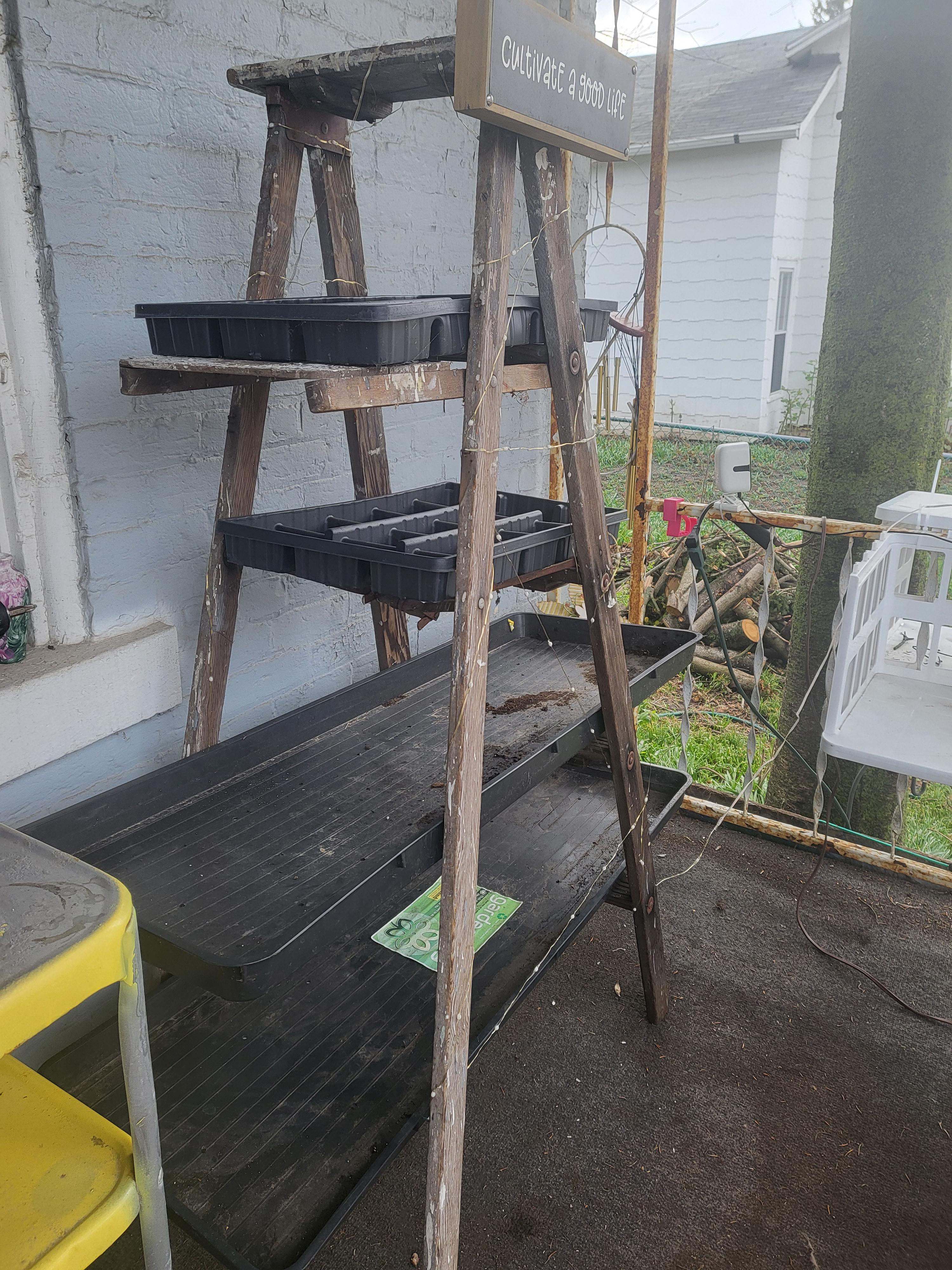 キャンプ場に捨てられていた古い梯子を見つけたので植物スタンドに作りました🌿🪴😍💯