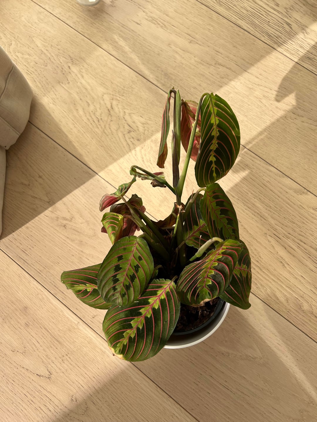 祈りの植物を手に入れて以来、かなり成長し、苦戦しているように見えますが、葉は決して直立した位置に移動しません。これはほとんど動きません。何が問題なのでしょうか?