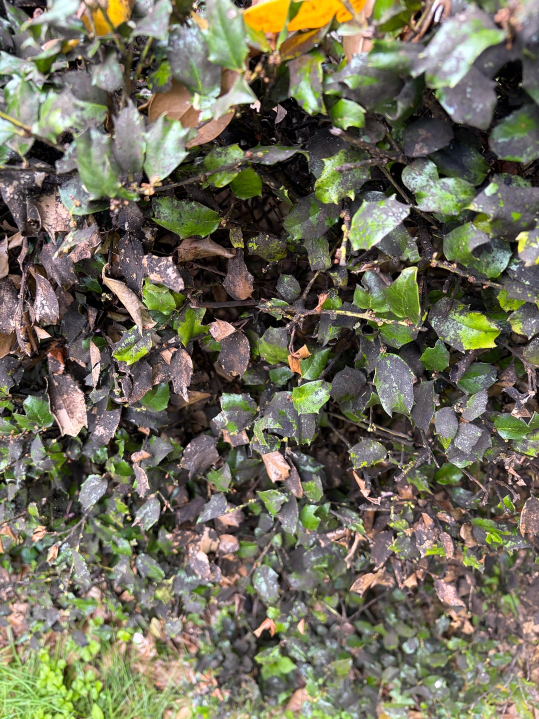 私たちは大きな低木と多年草の庭のある家(メリーランド州)を購入しました。それには深刻な真菌の問題が伴い、私たちはそれと闘おうとしてきました。この春、我が家には黒い斑点で覆われたヒイラギの低木が12本あり、地上常緑樹も枯れかけています。これは治療可能なのか、それとも切り戻して土壌と胞子を処理して最初からやり直すべきなのか迷っています。アドバイスをいただければ幸いです。