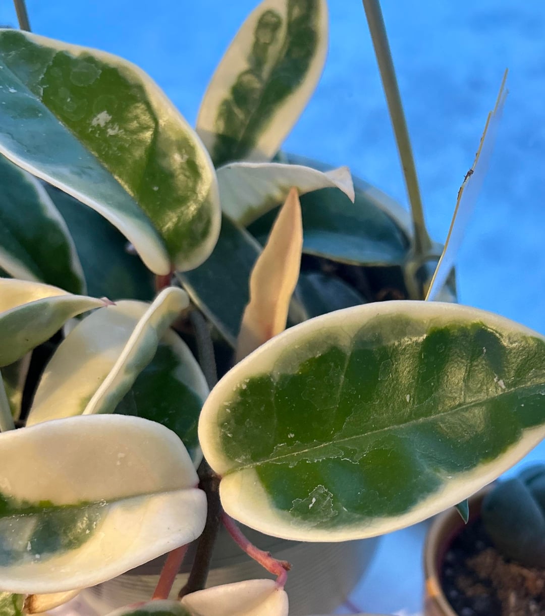 今週初めにこのホヤを購入したところ、葉が変色している​​ことに気づきました。一枚の葉がパリパリでボロボロだったので取り除きましたが、全体に斑点があり、水跡が残っているようです。家に持ち帰ってから一度も水やりをしていませんが、土はまだかなり濡れているので、水のやりすぎかもしれないと思っていますが、アザミウマの可能性はあるのではないかと疑問に思っています…葉の上で何も動いているようには見えませんが、実際に動くかどうかはわかりません。ティア!!