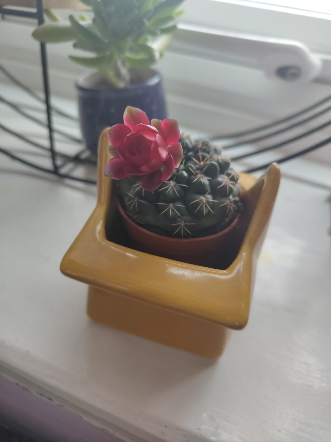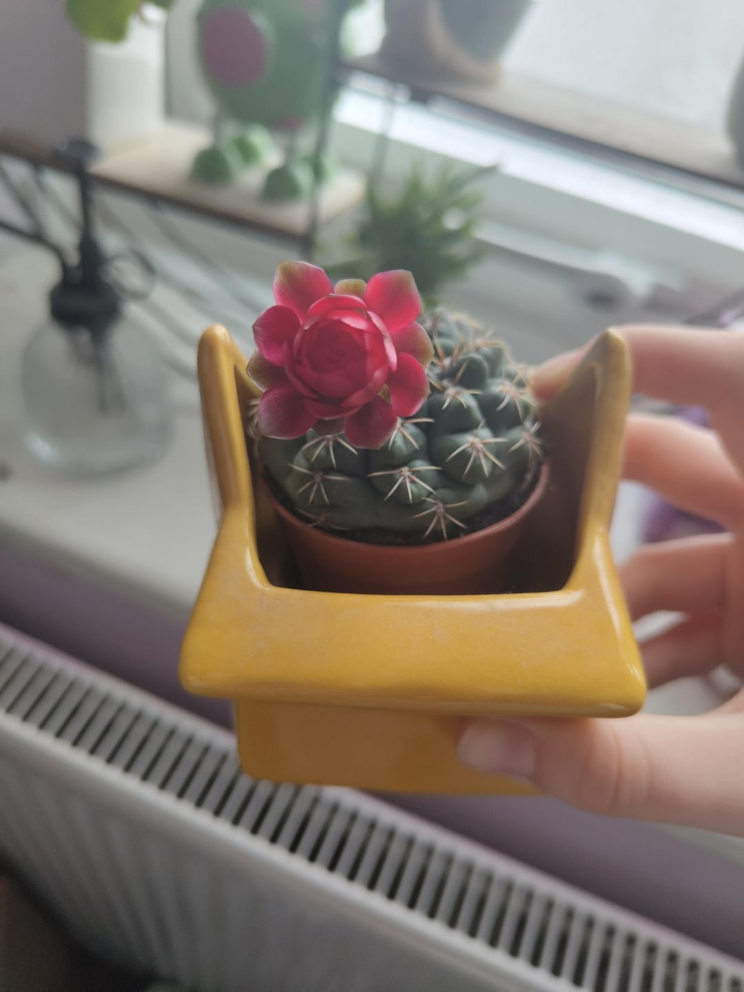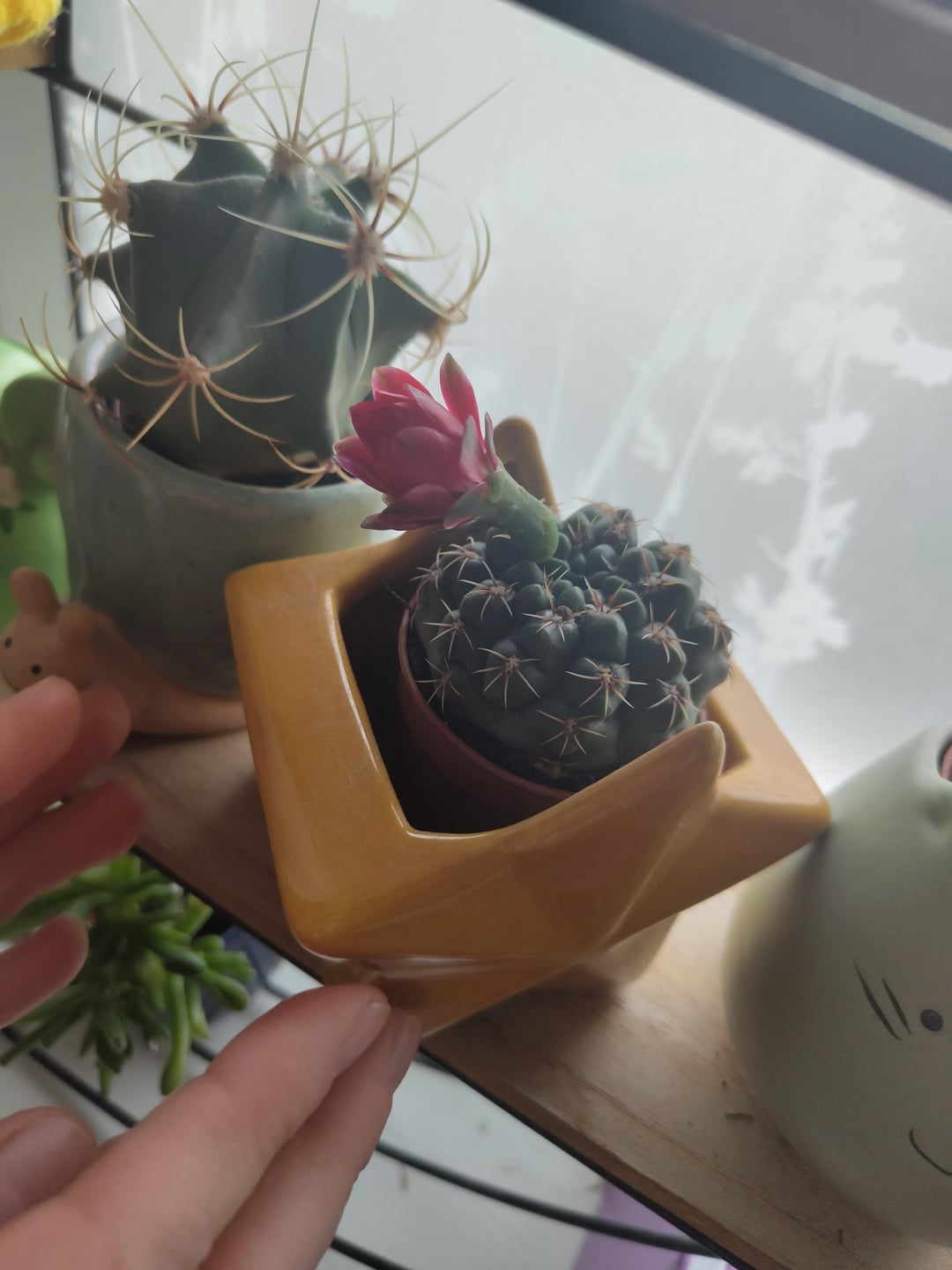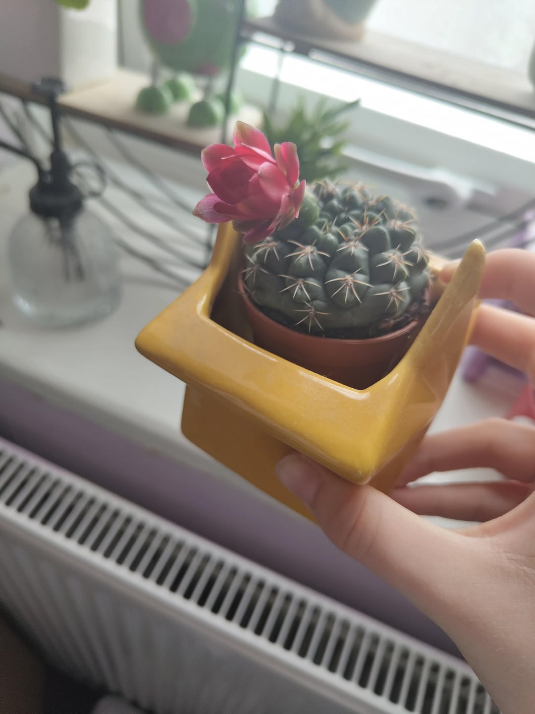 おそらく3週間前にこれを買ったばかりで、元パートナーが私の愛する植物の写真を送ってくれました。私は人生で一度だけサボテンの花を見たことがある。ギムノカリキウム・バルディアナムの赤ちゃんです。