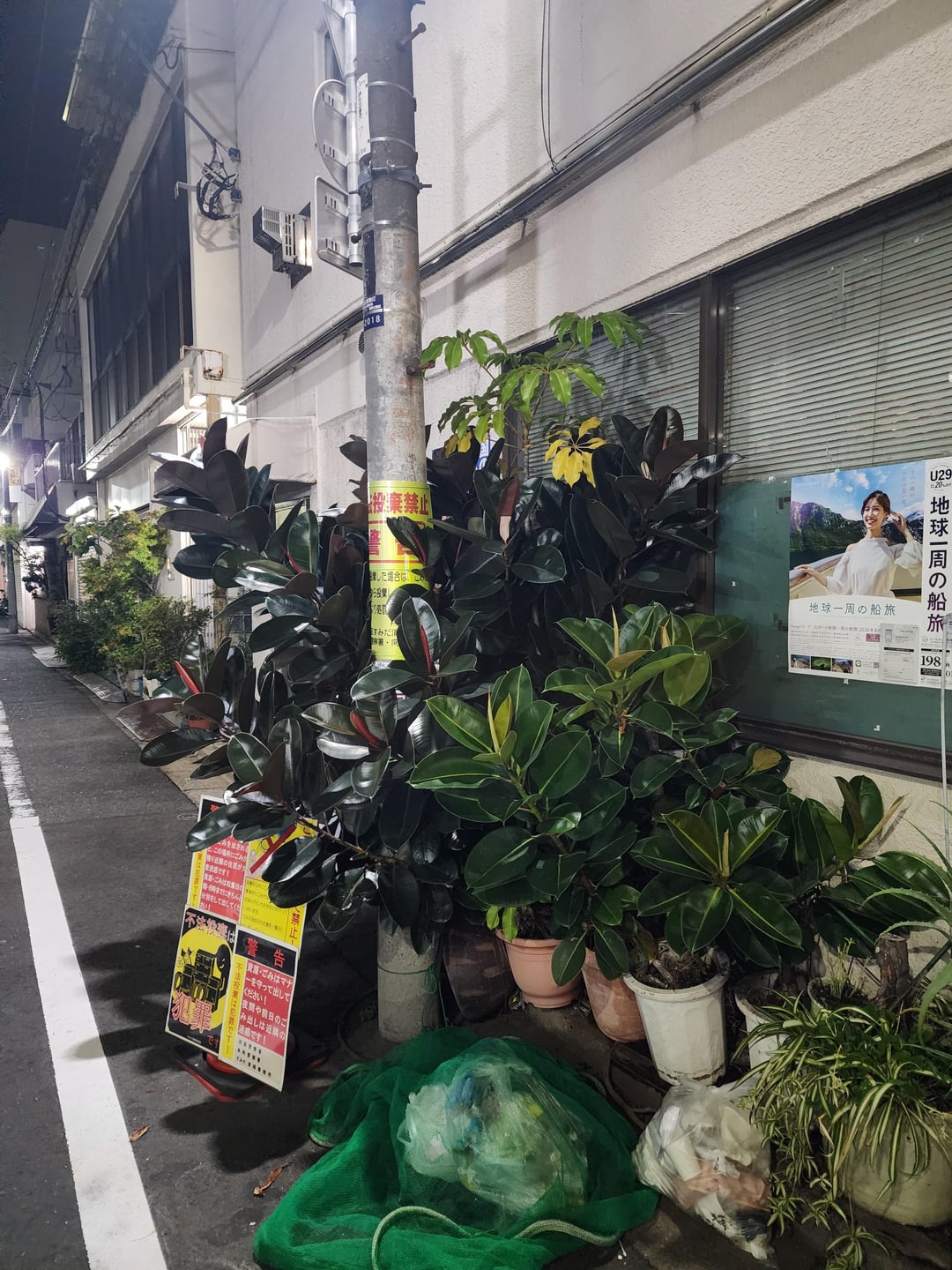 観葉植物ではないのが残念ですが、東京で見つけたこのゴムの木は多くの人に喜ばれると思いました。私が知る限り、それはすべて電柱の根元にある同じポットから出てきました。
