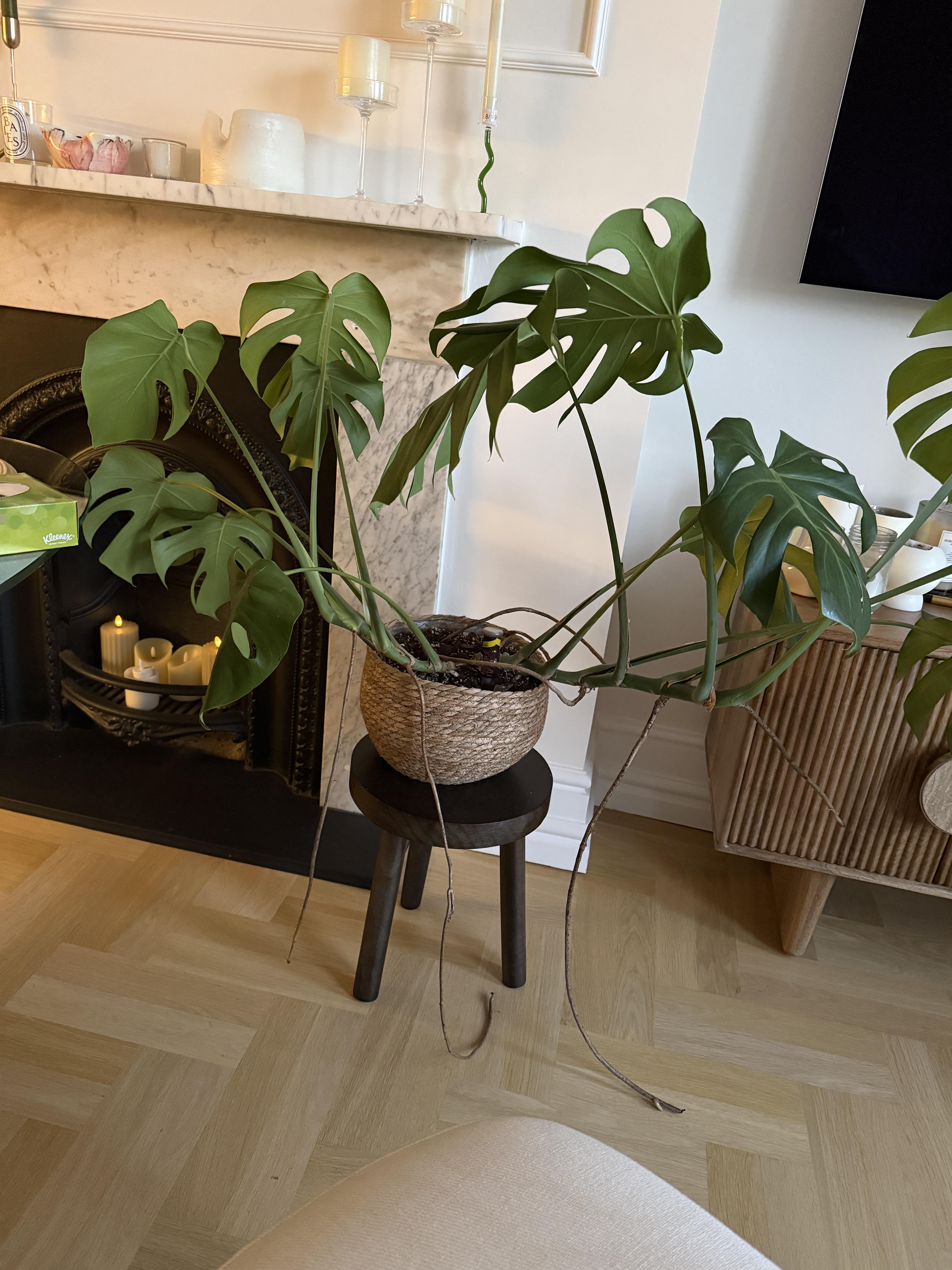 こんにちは、私はこのモンステラを2年間飼っていますが、上向きではなく横向きに成長しています。真ん中に棒を差し込んで取り付けられると聞いたのですが、前に出すぎて内側に曲げることができません。また、近々植え替えを考えているのですが、どのような鉢を買えばよいかアドバイスはありますか?私はこれが初めてです🥹助けてくれてありがとう!!