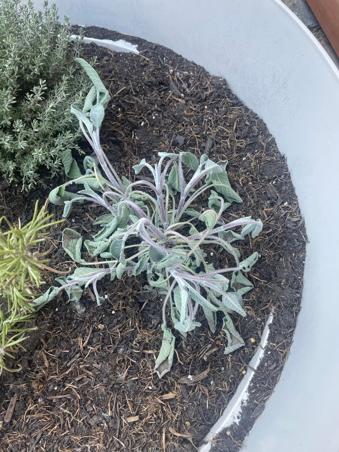 2週間近く前にこのセージをローズマリーとタイムの隣に植えたのですが、明らかに新しい住まいに満足していないようです。あれほど時間が経っても、やはり移植ショックなのでしょうか?