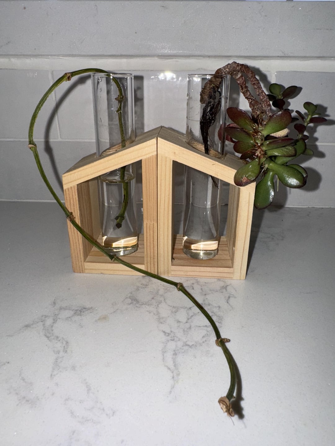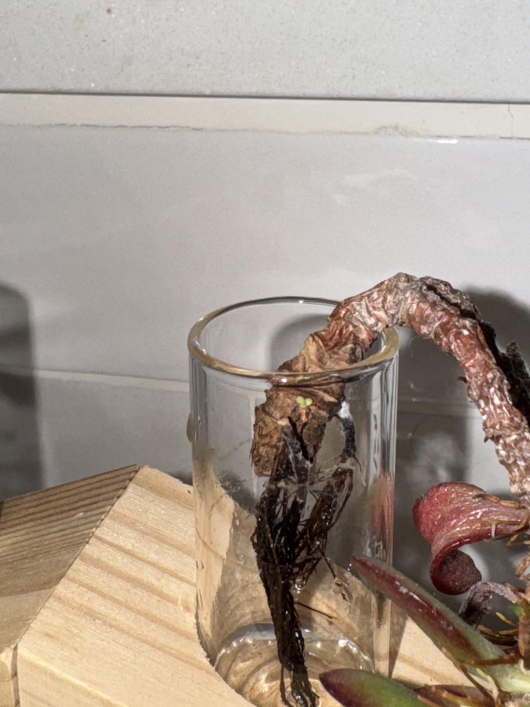 挿し木を水に挿したのですが、次に何をすればいいのか分かりません。 ヒスイ(?)には新しい成長がいくつかありますが、私を本当に驚かせるバグもいくつかあります。 私はそれを燃やしたいと思っていますが、それは最近修復不可能なほど損傷した非常に古い植物からのものであり、私はそれを尊重し、その唯一残っている赤ちゃんを救いたいと思っています。 ポトス(?)は1年間水の中に置いてあり、成長していないようですが、同じ植物の他の植物のように乾燥していないようです。 この切り抜きは、祖父が亡くなった後、法院に住んでいた祖父からもらったもので、そこから何かを生み出すことができれば、私にとって大きな意味があるでしょう。 アドバイスは大歓迎です!