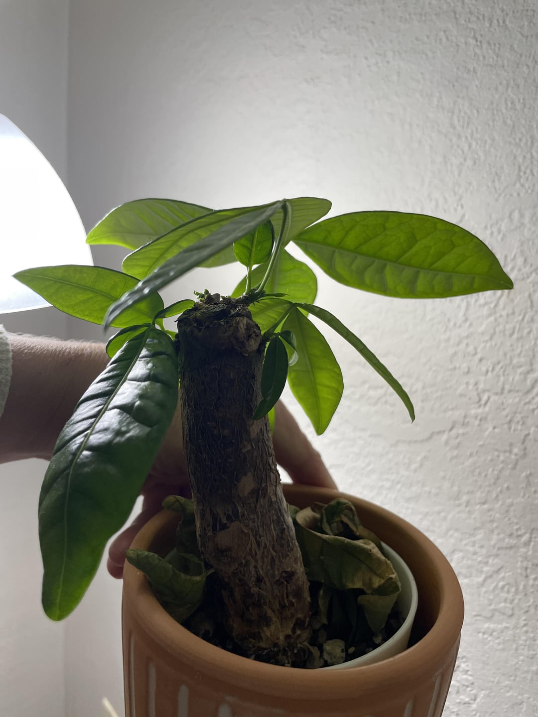 この金のなる木は支柱を立てません。 もう1つは根付いています(2番目の写真)。小道具を入手しているずんぐりした変人の写真も含めました。