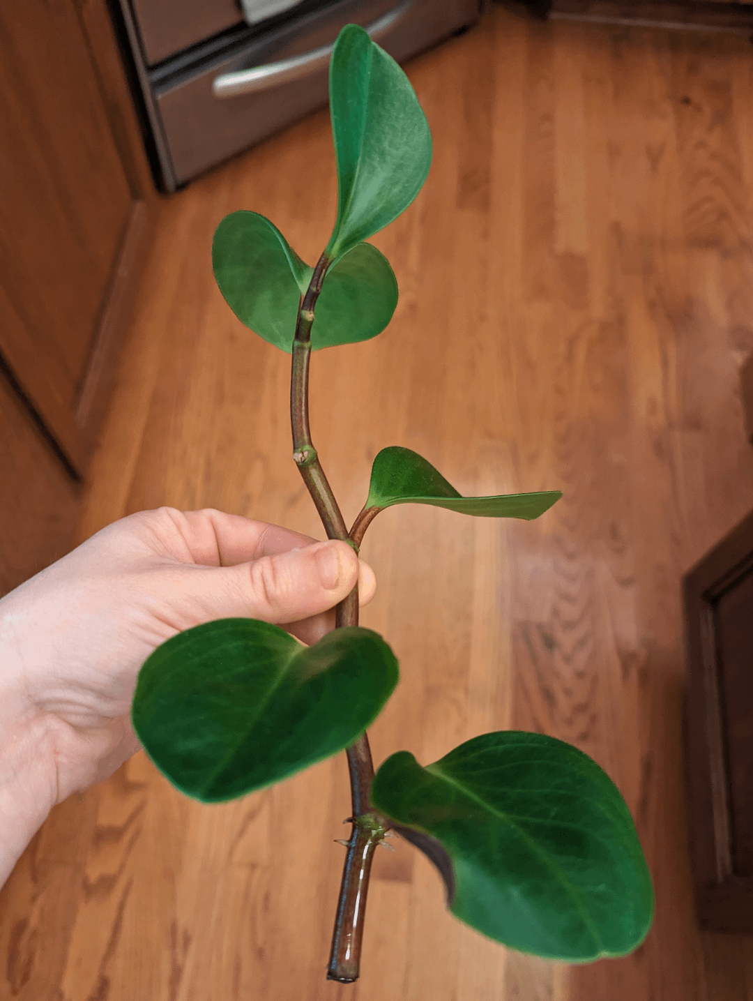 このかなり大きな挿し木は水中に2週間置かれており、下の葉の下に小さな根がいくつか生えています。 鉢を満たすために2つの挿し木(それぞれ3〜5インチ)を作成する必要がありますか、それとも背の高い1つの挿し木のままにしておくべきですか? これはペパロミアですか? ありがとう!