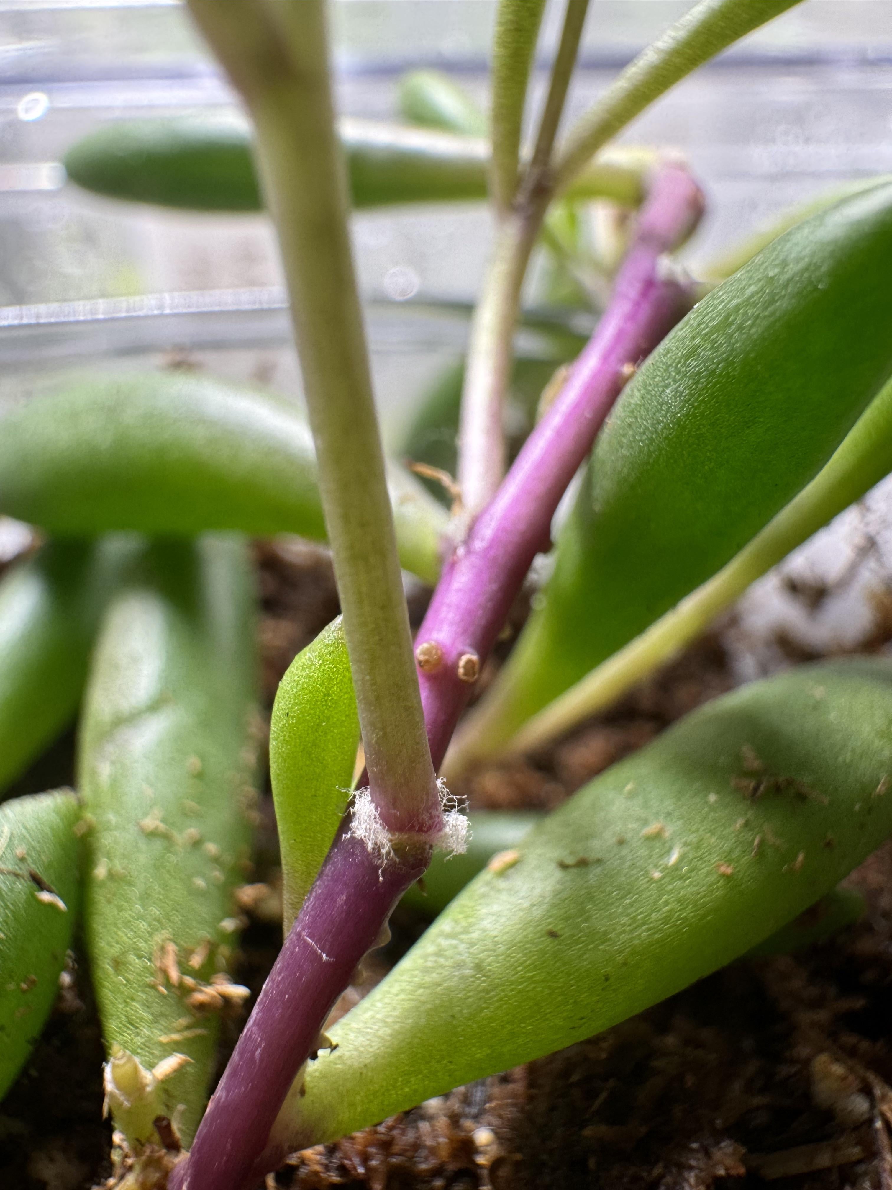 これらの植物を金物店から持ち帰ったのですが、白いふわふわした部分に気づきました。植物の面白い特徴でしょうか、それとも厄介な虫の侵入でしょうか?