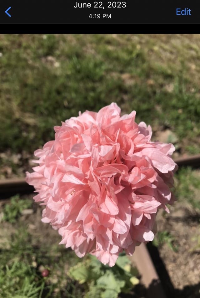昨年、数種類のポピーを植えましたが、このふわふわでフリルのある美しいピンクの品種から一輪の花が咲きました。今年も咲くことを期待して種を保存していたところ、今日咲きました! 🙂 2023 年の花については、最後の 2 枚の写真をご覧ください。